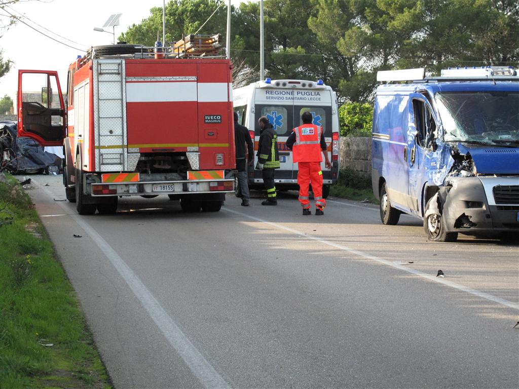 Alle ore 17:45 la Strada provinciale 18 era ancora chiusa al traffico. Sul posto sono intervenuti i Vigili urbani, gli agenti della Polizia di Stato e i Vigili del Fuoco di Maglie. I rilievi sono effettuati dalla Polizia stradale.