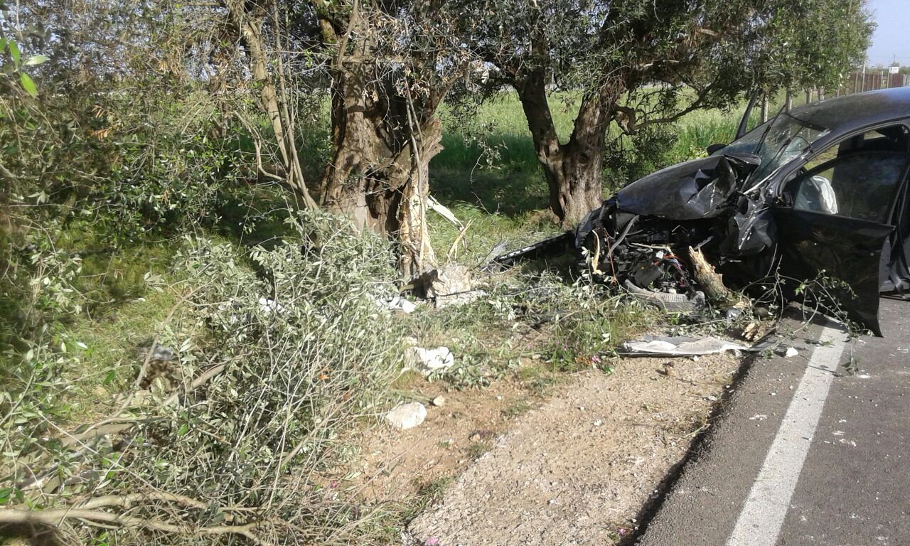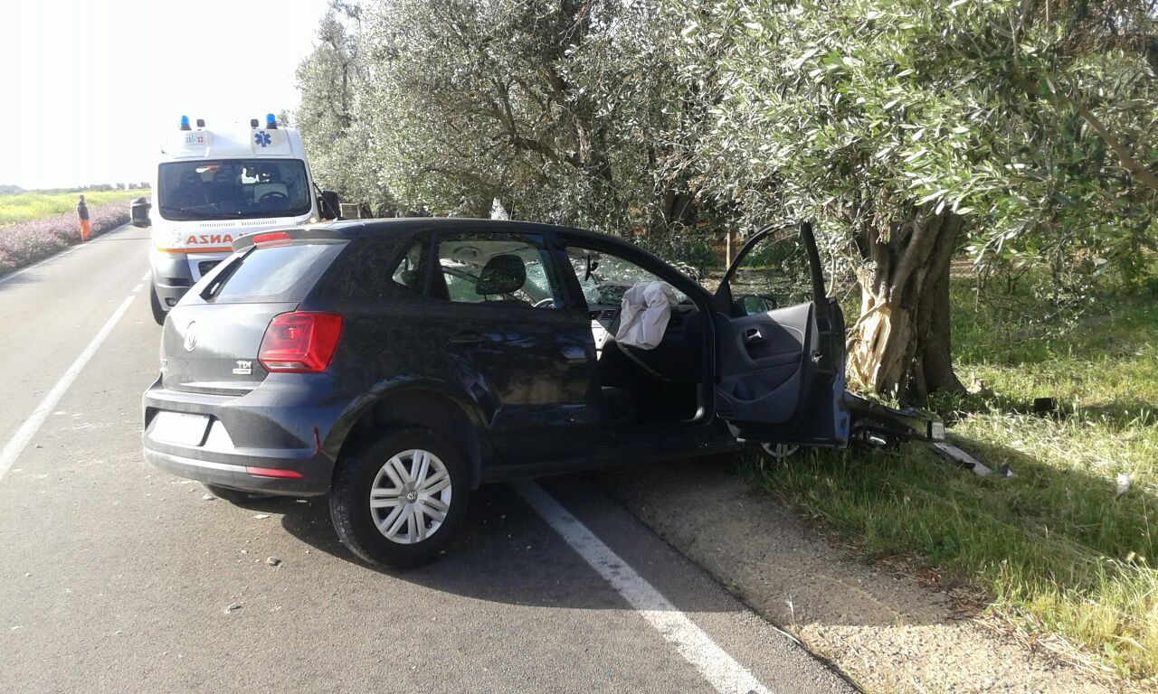 Una donna, L.M., di Carmiano, intorno alle 16,45 stava percorrendo la Galatina-Copertino in direzione Galatina. Per motivi ancora da chiarire, ma sembra probabile un colpo di sonno, la donna ha invaso la corsia opposta e si è ritrovata fuori strada, andando a sbattere contro uno degli ulivi che fiancheggiano la carreggiata.