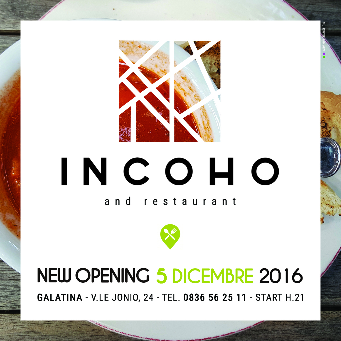 Incoho è quindi ristorante per chi vuole sperimentare la cucina migliore, nell’originale destrutturazione dei piatti creata dallo chef; è pizzeria, con idee originali e gustose di un prodotto che ormai è immancabile sulle nostre tavole; è joy, gioia, svago, angolo di relax, musica e drink.