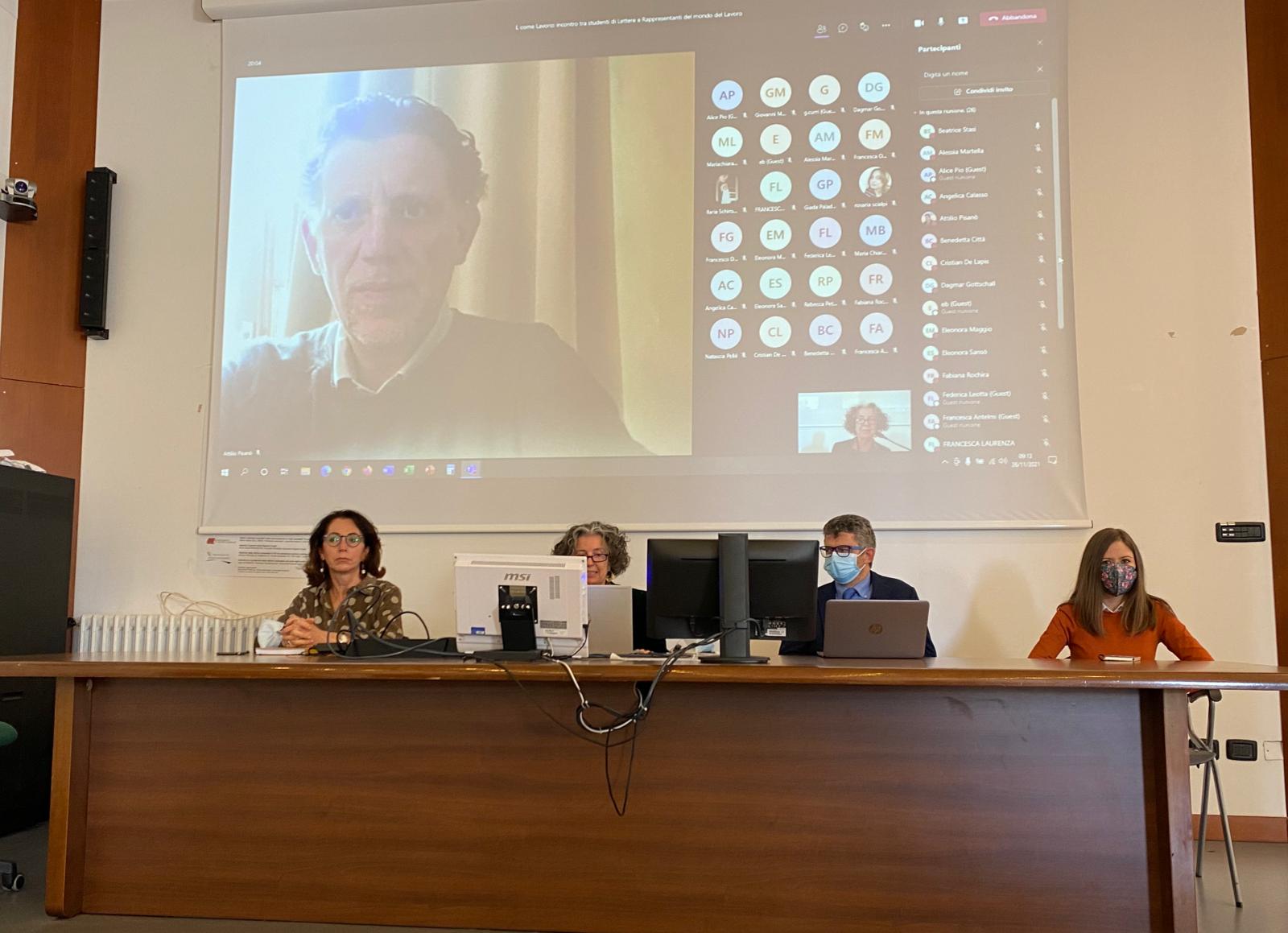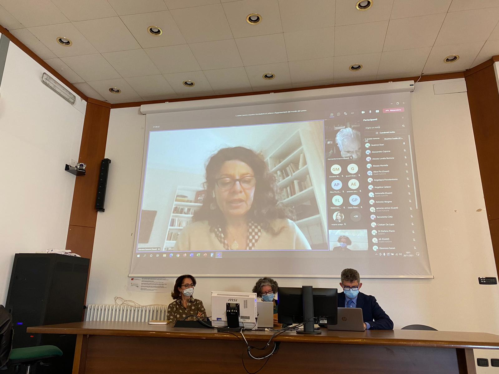 Grande successo per l’evento, denso e largamente partecipato, svoltosi ieri 26 novembre nell’Aula Ferrari del Palazzo Codacci Pisanelli dell’Università del Salento, denominato “L come Lettere L come Lavoro”. Docenti e studenti dei Corsi di laurea in Lettere hanno incontrato gli esponenti del mondo del lavoro, selezionati sulla base degli sbocchi professionali privilegiati per i laureati in discipline umanistiche. Dopo gli interventi del delegato alla Didattica di Ateneo, prof. Attilio Pisanò, della Presidente del Consiglio Didattico, prof.ssa Beatrice Stasi, della Presidente del Comitato d'Indirizzo, prof.ssa Sabina Tuzzo, del Delegato ai Tirocini e all'Orientamento, prof. Alessandro Capone, della rappresentante degli studenti interna al Comitato d'indirizzo, sig.ra Federica Gabellone, si sono susseguiti al microfono, in presenza o in collegamento da remoto, i rappresentanti del mondo del giornalismo (il dott. Mario Nanni, giornalista parlamentare e il dott. Paolo di Stefano, giornalista culturale del “Corriere della Sera”), dell’editoria (la dott.ssa Valentina Saraceni, della casa editrice “Storia e Letteratura” di Roma e il dott. Emanuele Augieri, della casa editrice “Milella” di Lecce), della scuola (prof. Antonio Errico, dirigente scolastico del Liceo “Quinto Ennio” di Gallipoli), della didattica digitale (dott.ssa Federica Leotta, responsabile della piattaforma digitale “Weschool”, Milano), dei musei e del turismo culturale (dott.ssa Filomena Ranaldo Responsabile del Museo della Preistoria di Nardò; dott.ssa Maria Laura Spano, Museo archeologico dei ragazzi di Nardò; dott.ssa Maria Giuseppa Alloggio, Associazione The Monuments People e Museo del Mare Antico di Nardò), del restauro e del Fund raising (dott. Graziano Curri, Presidente Charity “Ligamina”). Tutti gli interventi hanno rilevato e valorizzato la duttilità della formazione dei laureati in Lettere, in grado di assicurare competenze trasversali spendibili in diversi ambiti lavorativi, sottolineando in particolare l’importanza dell’acquisizione di abilità nella produzione scritta e nella comunicazione orale. Tante le domande degli studenti, miranti a comprendere i possibili percorsi da intraprendere per progettare il loro futuro lavorativo. L’incontro ha rivestito un ruolo di particolare rilevanza anche in funzione della progettazione e dell’aggiornamento dei percorsi formativi dei Corsi di Studio in Lettere e della promozione di convenzioni utili per eventuali tirocini formativi degli studenti presso aziende ed enti.