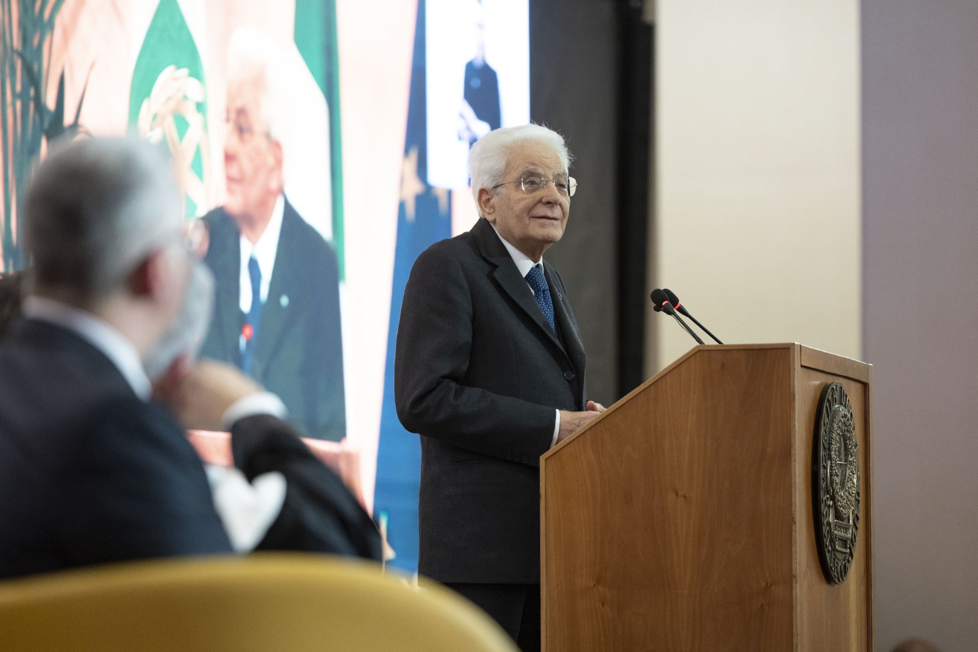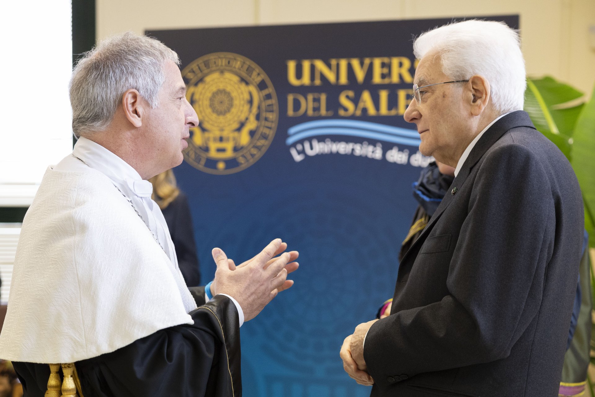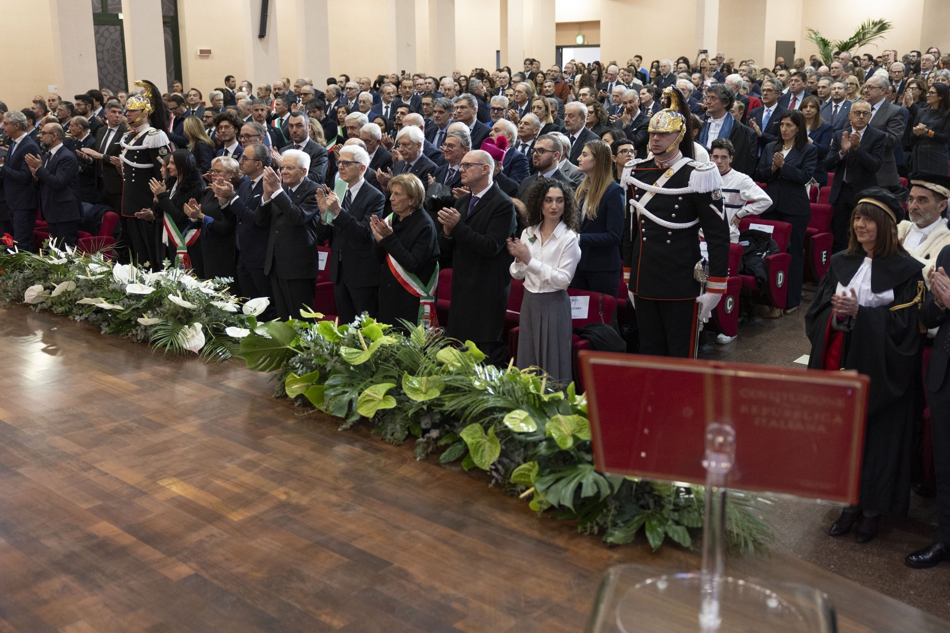 Collegare il momento di nascita dell’Ateneo con quello di oggi, a settant’anni. Quel momento, nei primi anni ‘50, con l’Italia ancora dentro le difficoltà della devastazione della guerra, con i territori in difficoltà. Va ricordata l’intuizione e il grande merito lungimirante - come è stato sottolineato poc’anzi - dei cittadini, di persone, di coloro che hanno immaginato, proposto, assecondato, condiviso, appoggiato, così diffusamente, nel popolo del Salento, la decisione di investire sulla cultura, non soltanto come decisivo elemento di crescita sociale, di piena cittadinanza di ciascuno, ma anche come motore di sviluppo del territorio. È stato quello un momento di meridionalismo adulto, protagonista. Quel momento va collegato a quello di oggi, mi sembra, da quanto abbiamo ascoltato. Non soltanto perché l’Ateneo, che ha contribuito allo sviluppo del territorio, continua a promuovere, accompagnare questo sviluppo, ma anche perché l’Ateneo offre, così come le altre Università del nostro Paese, in questo momento storico, l’opportunità di dare una risposta alla ricerca di nuovi assetti nelle condizioni che mutano. Quanto avviene, mutamenti così profondi, veloci, radicali, dalla Intelligenza Artificiale, alla grande intensità di strumenti di comunicazione e di connessione, mutano le condizioni della vita del mondo e vi è l’esigenza di individuare nuovi equilibri, e questi vanno trovati attraverso la cultura. È questo il compito che gli Atenei svolgono e che, in questo territorio, svolge questo Ateneo. Si tratta - come è stato detto poc’anzi- di stimolare la ricerca, la trasmissione del sapere, nel collegamento tra le varie discipline di studio e di scienza, senza loro separazione, ma con loro convergenza, interagendo fra di esse, per porre sempre al centro di queste trasformazioni la persona umana.