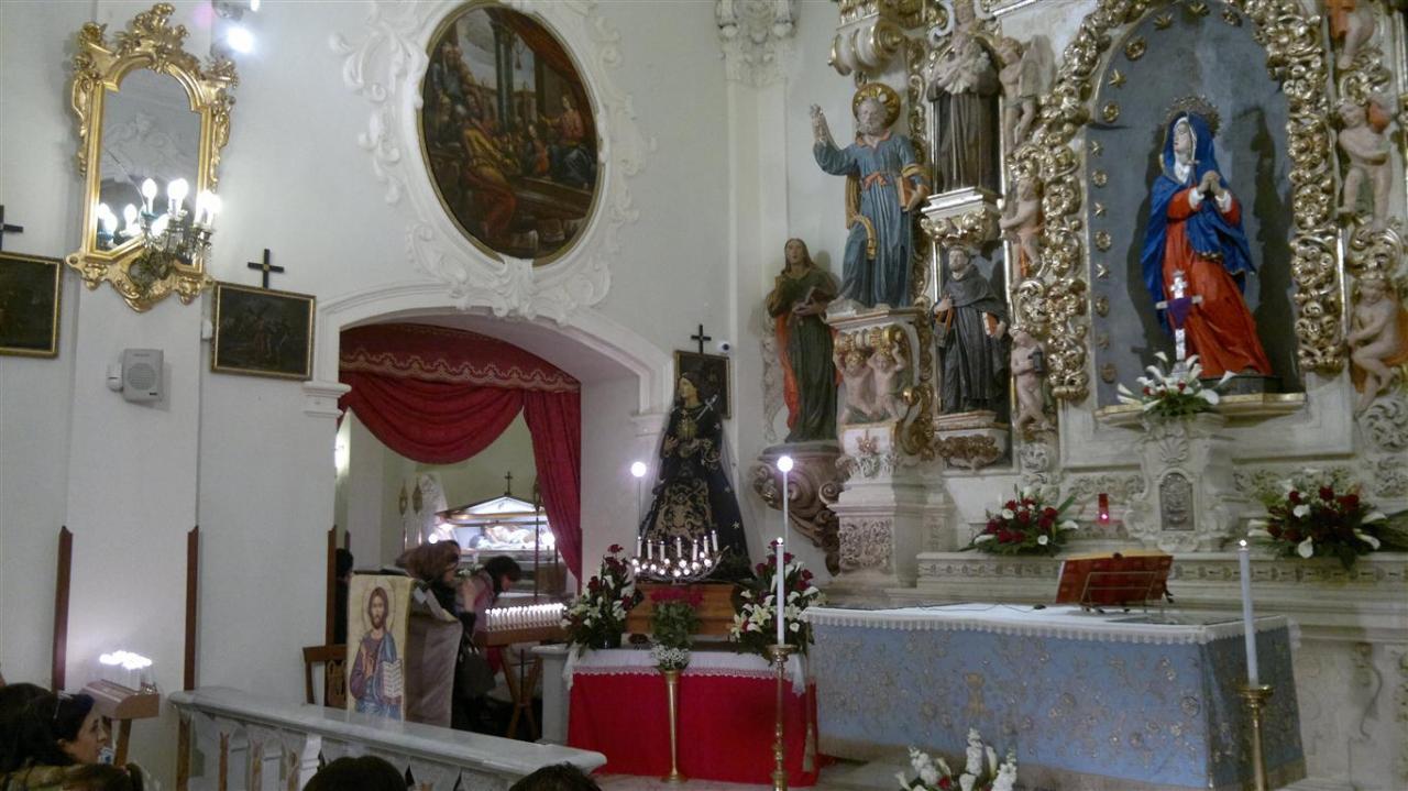 La festa della Vergine dei sette dolori è una delle più sentite dai galatinesi. Anche quest'anno sono accorsi a centinaia a pregare davanti alla statua settecentesca dell'Addolorata e a quella, appena restaurata, del 'Cristo morto'. Grandi e piccini si fermano davanti al simulacro (collocato a destra dell'altare maggiore) della Madre di Cristo con il volto e le mani in cartapesta ed il vestito finemente ricamato nel diciottesimo secolo e pronunciano un'Ave maria poi passano nell'aula laterale dove il Figlio di Dio giace pieno di ferite e di sangue.