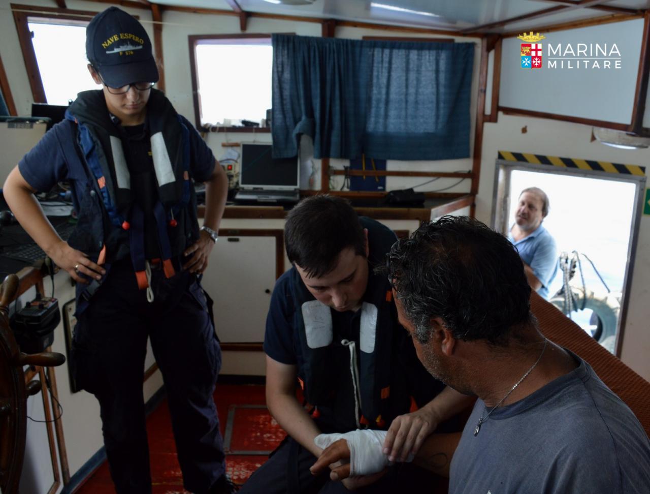 L’unità ha prontamente ridotto le distanze e, appena giunta in prossimità del peschereccio, ha inviato il proprio team sanitario a bordo che è intervenuto sul trauma alla mano destra sofferto da un marittimo. Le condizioni del paziente non erano tali da richiedere l’evacuazione dell’infortunato. La fregata Espero, terminato l’intervento sanitario, ha ripreso il normale pattugliamento nell’area di operazione.