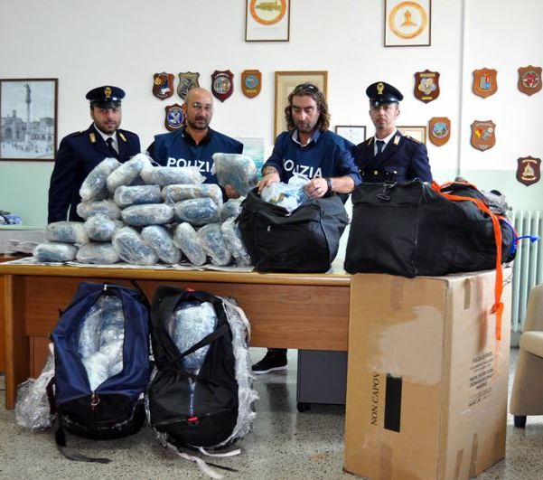 Nelle prime ore della mattina di ieri, gli uomini della Squadra Mobile, impegnati in un servizio antidroga, dopo un lungo appostamento a Torre Veneri, marina di Frigole, ha notato due acquascooter che passavano lungo la costa trascinando due oggetti di forma ovoidale, che successivamente sono stati riconosciuti come due coppie di canoe in vetroresina, saldate insieme. Alla vista degli agenti, i due alla guida degli acquascooter hanno staccato il carico trasportato e si sono dileguati a tutta velocità.