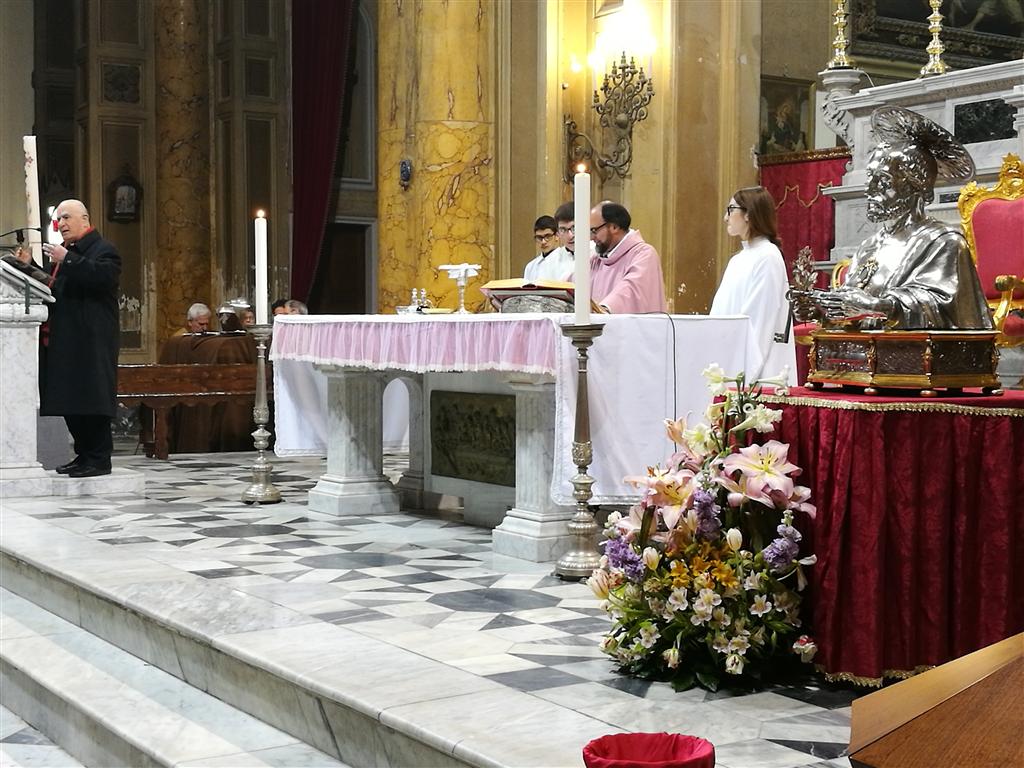 Alla fine della celebrazione il parroco, don Aldo Santoro, ha voluto ricordare con gratitudine e riconoscenza il gesto del Commissario Guido Aprea, che ha indetto il lutto cittadino durante le esequie del compianto don Fedele Lazari, "sacerdote amabile ed esemplare". Questo per sottolineare la sinergia che c'è e c'è sempre stata tra il clero, la comunità civile e i cittadini. A testimonianza di ciò i nostri padri hanno voluto lasciare un segno sulla facciata della gloriosa Chiesa Madre con un'iscrizione che recita: "Principi Apostolorum ordo sacer et cives Galatinae urbis raedificavere A. D. MDCXXXX"( I sacerdoti ed i cittadini di Galatina riedificarono al principe degli Apostoli nell' anno del Signore 1640). Sull' altare, come da tradizione, era situata la seicentesca statua in argento di San Pietro protettore, insieme a San Paolo, di Galatina.