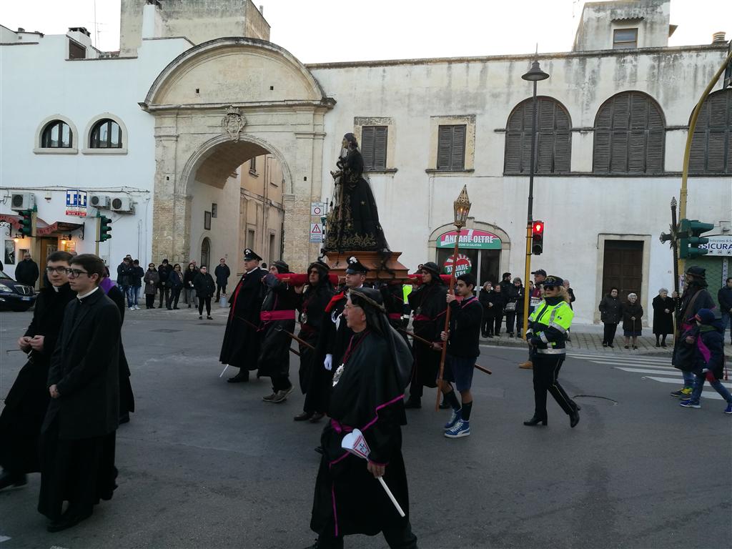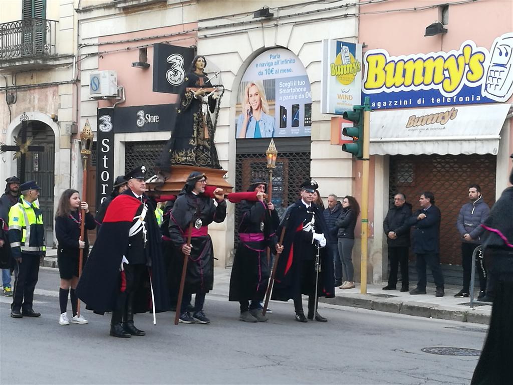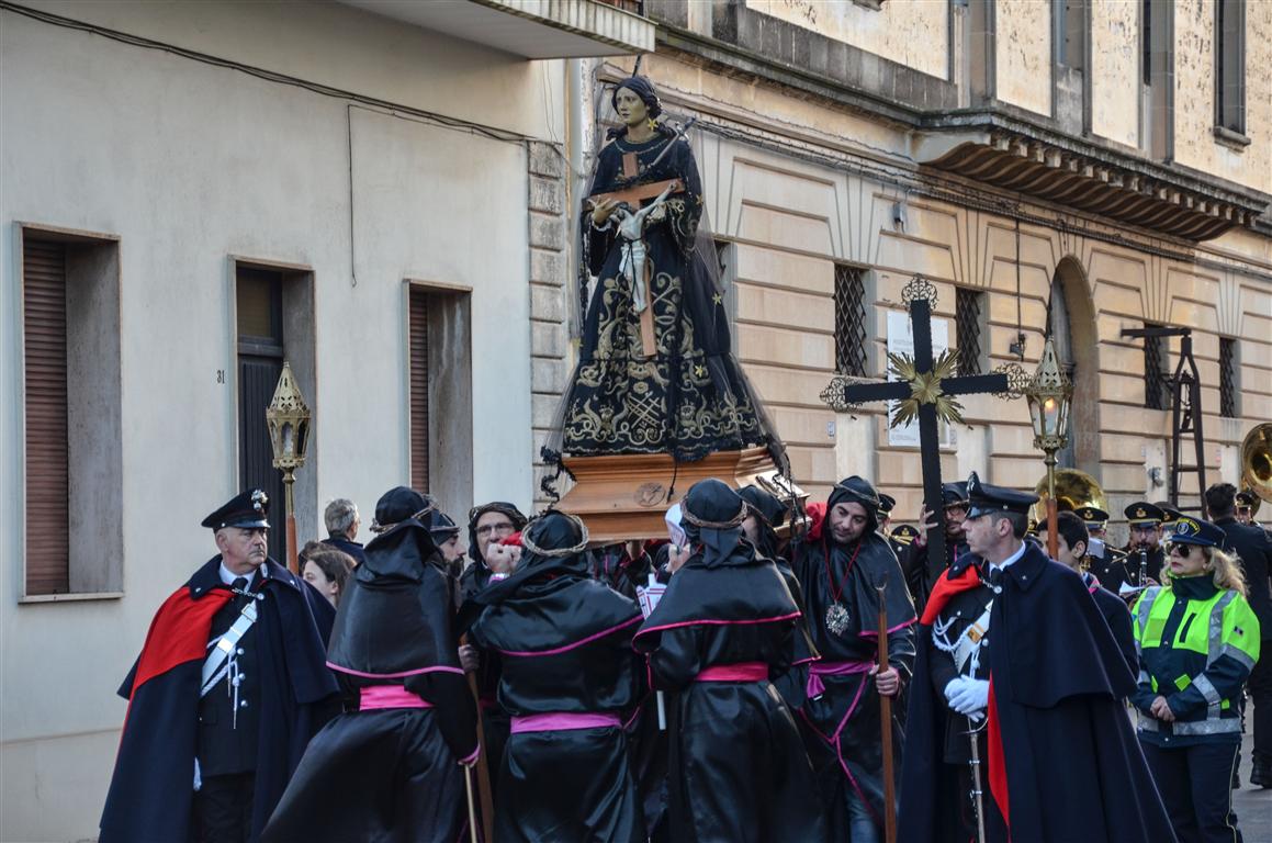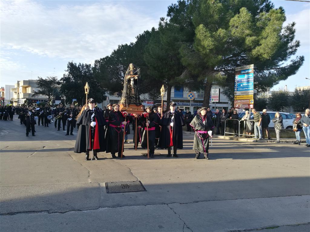 A lei non importa. Non bada al vento, non bada alle parole. Nemmeno le sente, non sente quelle chiacchierate, non sente quelle pregate. Oggi è solo cuore e spada, strazio di Madre orfana di un Figlio lacerato, Dio esanime. Chissà se ti ha mai baciata, mostrandosi fragile e innamorato di te, come un bambino che non conosce bellezza più vera di quella della sua mamma. Se non lo ha fatto, comprendilo. Da amare Egli aveva un intero mondo. Da baciare aveva la croce. Non piangere, Desolata. Lo hai seguito sotto il tuo velo nero, ricordo di un cielo cupo, di un Golgota che domani sarà ormai troppo lontano. E ogni goccia di addio sulla terra sarà fiore, tra le nuvole stella. Domani sarà luce. Ci hai sempre creduto, a ogni "sì" da te donato. Insegnaci come si fa.