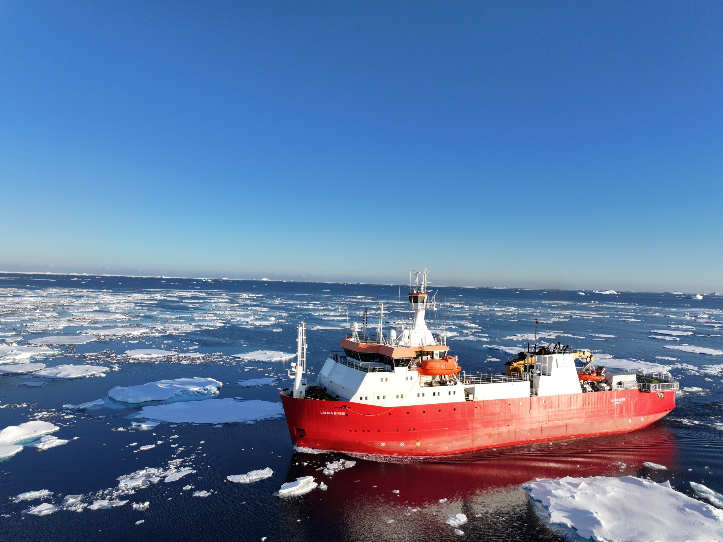 La N/R Laura Bassi è oggi l’unica nave rompighiaccio italiana per la ricerca oceanografica in grado di operare in mari polari, sia in Antartide sia in Artico. È stata acquistata dall’Istituto Nazionale di Oceanografia e di Geofisica Sperimentale – OGS nel 2019 grazie al finanziamento dell’allora Ministero dell’università e della ricerca – MUR e opera a supporto di tutta la comunità scientifica. L’obiettivo principale della nave Laura Bassi è il supporto scientifico e logistico alle missioni polari italiane e al contempo consentire la ricerca oceanografica e geofisica dei ricercatori dell’Ente e della comunità scientifica nazionale ed europea a livello globale e, in particolare, polare. È una rompighiaccio categoria A classe PC5 ed è stata concepita come una nave speciale combinando in maniera ottimale sia capacità cargo sia di ricerca scientifica. Ha una stazza di 4028 tonnellate, è lunga 80 metri e larga 17 metri, ha un sistema di posizionamento dinamico che le garantisce un’elevata manovrabilità e un’accuratezza di stazionamento in un prefissato punto dell’ordine di 1 metro. La struttura del fasciame, particolarmente robusta, le permette di operare in mari coperti da ghiaccio senza temere danni strutturali.