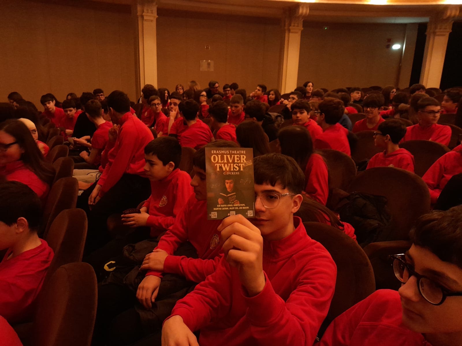 Gli attori hanno dato vita alla celebre storia con grande energia ed emozione, rendendo i personaggi realistici e appassionanti. L’infanzia difficile di Oliver, il suo coraggio e la sua speranza in un futuro migliore sono stati rappresentati in modo toccante e intenso. L’atmosfera del teatro ha reso l’esperienza ancora più speciale. Il Teatro Apollo, con la sua architettura elegante e l’ambiente accogliente, ha creato la cornice perfetta per un evento culturale così importante. Per molti studenti non è stata solo una semplice uscita scolastica, ma anche un’occasione per apprezzare il teatro dal vivo e vivere la letteratura in modo diverso e più dinamico. Lo spettacolo è stato rappresentato in lingua inglese, aiutando gli studenti a migliorare le loro capacità di ascolto e il loro vocabolario. È stato un modo divertente e interattivo per ascoltare il testo in lingua mentre si godeva una storia classica. Gli attori dell’Erasmus Theatre hanno inoltre coinvolto il pubblico in alcuni momenti, facendo sentire gli studenti parte integrante dello spettacolo. Durante lo spettacolo, gli attori hanno anche saputo coinvolgere attivamente i ragazzi, utilizzando i loro strumenti musicali e le loro voci per offrire brani e canzoni a tema. I momenti musicali hanno suscitato grande entusiasmo e partecipazione, creando un’atmosfera coinvolgente e stimolante che ha reso l’esperienza ancora più significativa per tutti i presenti.