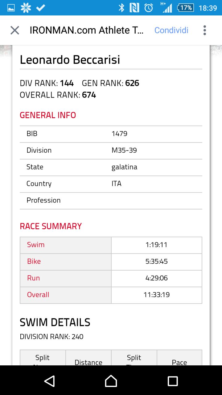Galatina ha il suo primo Ironman della storia, Leonardo Beccarisi, 38 anni, domenica 5 luglio è giunto primo tra i triatleti delle squadre pugliesi partecipanti al campionato europeo IRONMAN del circuito mondiale tenutosi a Francoforte sul Nemo nel cuore della Germania. Amante delle multi discipline ed esperto atleta su prove di endurance come la maratona, in quanto atleta del Club Correre Galatina, Beccarisi affina la sua tecnica nel team MSL triathlon team riuscendo a portare a termine una prova difficilissima e al limite estremo delle capacità umane, ha affrontato 4km di nuoto, a seguire 180 km in bici e infine la maratona, 42,195 km, impiegando solo 11 ore e 33 minuti, un tempo di assoluto rilievo, ottenuto peraltro con condizioni di caldo estremo che ha penalizzato tutti gli atleti.