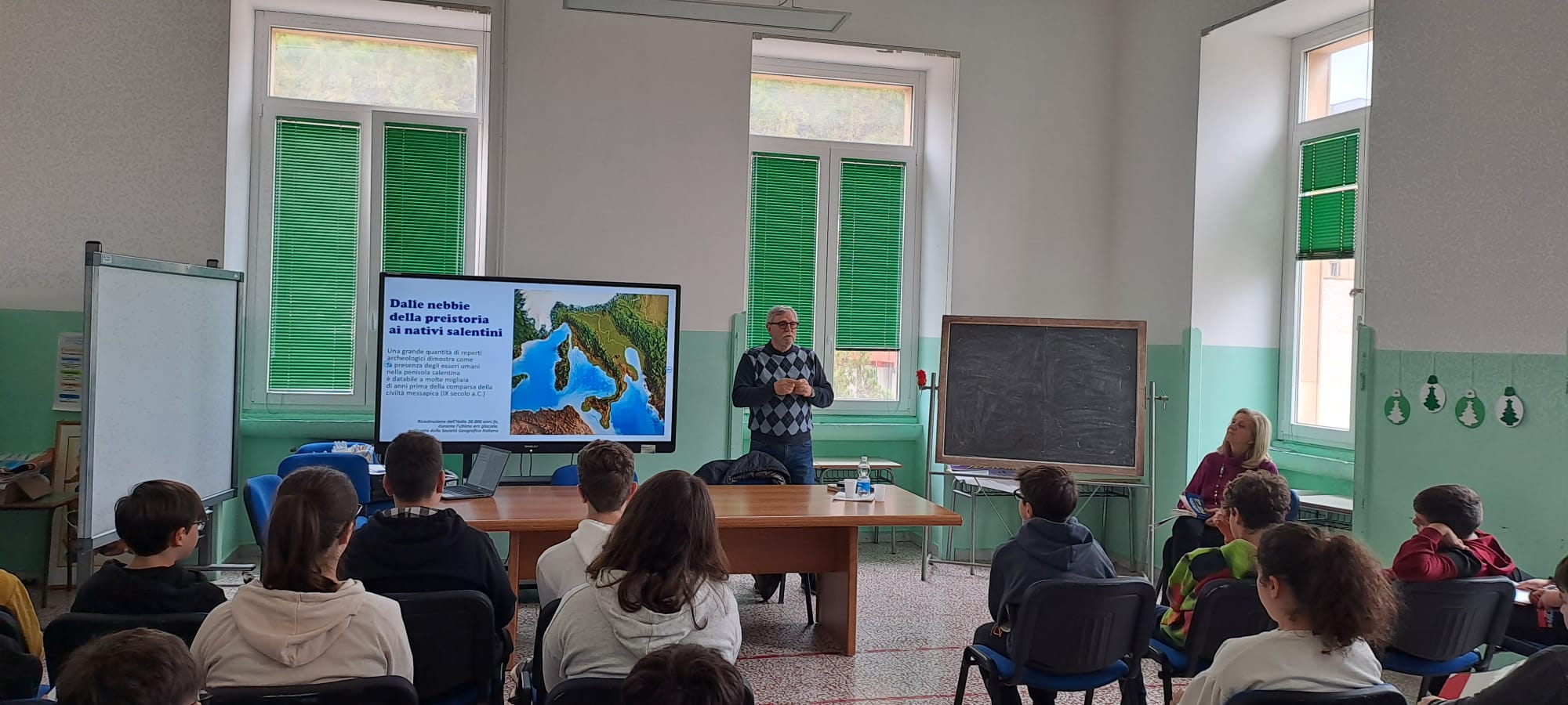 La prima rassegna di incontri con autore organizzata dalla Referente del Progetto lettura della Scuola secondaria di I grado Giovanni XXIII del Polo 3 di Galatina, si è chiusa con l’incontro tra gli alunni delle classi seconde e Lino De Matteis, illustre firma del giornalismo italiano, scrittore, direttore della rivista ilGrandeSalento.it, tra i fondatori del Quotidiano di Lecce-Brindisi-Taranto, poi Nuovo Quotidiano di Puglia, direttore del quotidiano Paese Nuovo, caporedattore della Tribuna del Salento e direttore di Progetto, collaboratore della Repubblica e dell’Espresso. L’autore ha parlato ai e con i ragazzi del suo ultimo lavoro “Storia del Grande Salento. Dalle radici di Terra d'Otranto ai cento anni delle Province di Brindisi, Lecce e Taranto”. Perché ci chiamiamo Messapi? Come si arriva al toponimo Salento? Queste alcune delle domande che hanno dato l’avvio alla “conversazione” con alunni e docenti presenti. Con lo sguardo indagatore del giornalista, l’autore ha costruito il racconto del Grande Salento attraverso la rilettura degli eventi storici dalle origini ai giorni nostri; interessantissima la riflessione che la penisola salentina è sempre stata un’unica regione storico-geografica, tanto che la tripartizione del territorio voluta dal Fascismo, con la creazione delle province di Brindisi, Lecce e Taranto, da una parte ha alimentato i provincialismi, dall’altra non è riuscita a cancellare il sentimento unitario, che, sopravvissuto alle tortuosità storiche, si è di continuo riproposto, dall’Assemblea costituente ai recenti accordi tra gli Enti locali. Osservando i documenti proposti dall’autore, seguendo il filo logico del suo excursus e rispondendo agli stimoli offerti, i ragazzi, pur così giovani, hanno esternato le loro considerazioni e si sono trovati concordi sull’importanza di superare i localismi in nome di un comune senso di appartenenza al Grande Salento che risponde alla necessità di stare uniti per crescere insieme, per affrontare insieme le sfide dello sviluppo e della modernità, sfide che sono affidate proprio ai ragazzi di oggi protagonisti del cammino verso il domani. La rassegna di incontri con autore “Conversazione con…” fortemente voluta dalla Dirigente scolastica, prof. ssa Rosanna Lagna, e accolta con entusiasmo da alunni e docenti nell’ambito del progetto lettura dell’Istituto, ha ospitato un ricco cartellone di scrittori locali e non: Leonardo Patrignani, Silvia De Lorenzis, Marinella Olivieri, Sofia Schito, Simona Simone, Lino De Matteis. Ciascuno di loro ha messo a disposizione la propria competenza ed esperienza, l’arte della scrittura, la propria fantasia o la capacità di analisi storica, ciascuno ha offerto stimoli, momenti di confronto, ha rappresentato una finestra aperta sul territorio e sulla cultura fuori dalle aule scolastiche. Ringraziamo tutti per la collaborazione e rimandiamo al prossimo ciclo di conversazioni con…