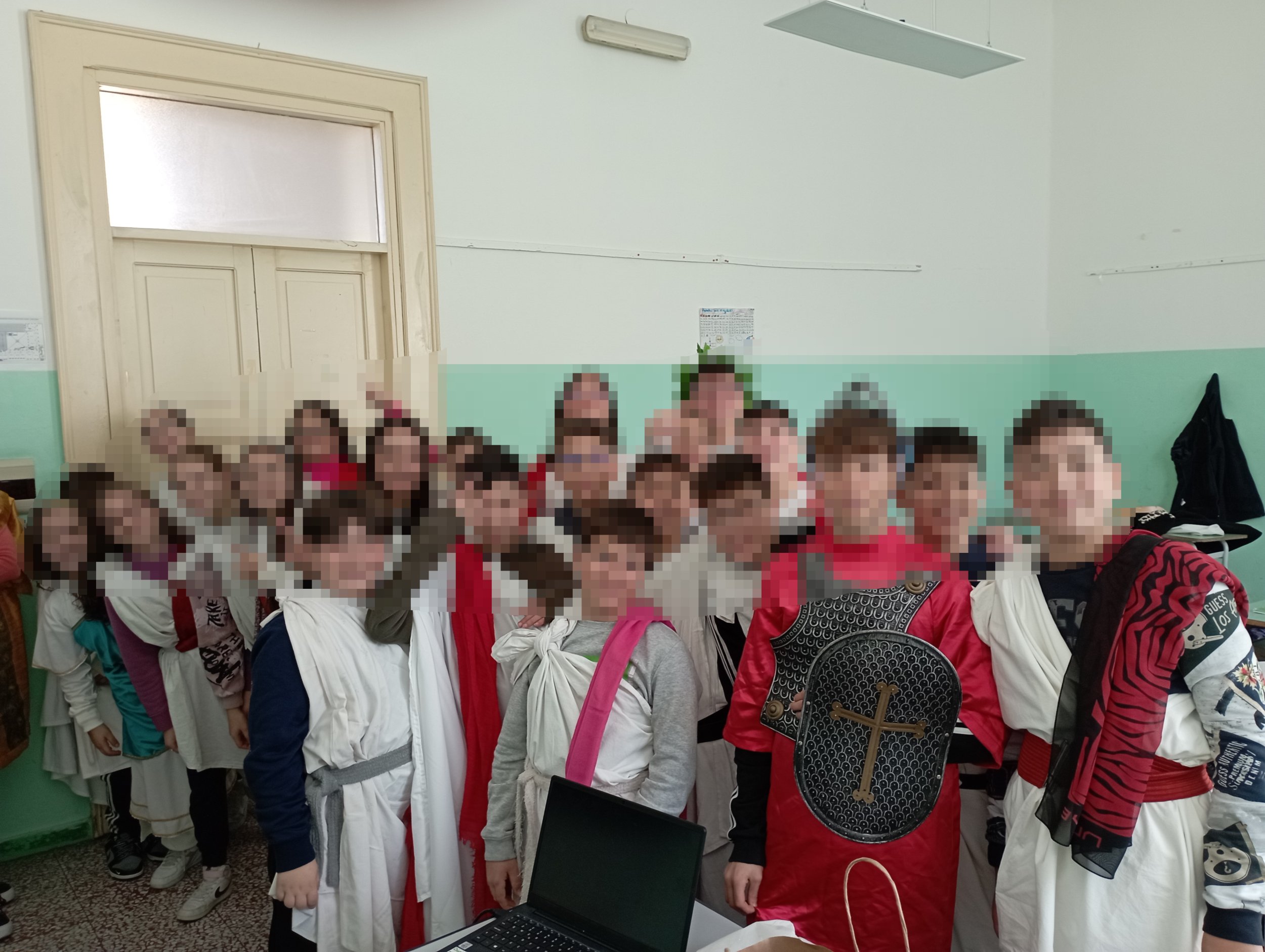 Il Giovedì Grasso si è festeggiato in maniera diversa alla Scuola Secondaria di I Grado “Giovanni XXIII” del Polo 3. Complici i genitori che hanno fornito lenzuoli bianchi, sciarpe colorate e cinture (tutto rigorosamente riciclato!), i ragazzi della II B hanno bussato alle porte delle classi vicine e hanno inscenato un flash mob sulle note di “Gioca jouer”, tradotto per l’occasione in latino, proprio da loro.