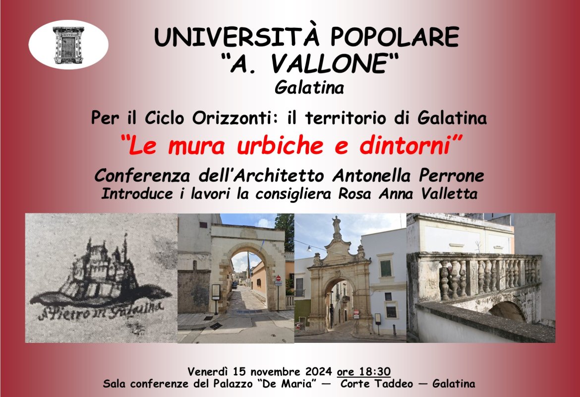 Oggi venerdì 15 novembre alle ore 18:30, nella Sala conferenze “De Maria” in corte Taddeo, nell’ambito del Ciclo dedicato ad “Orizzonti: il territorio di Galatina”, è in programma una conferenza dell’architetto Antonella Perrone