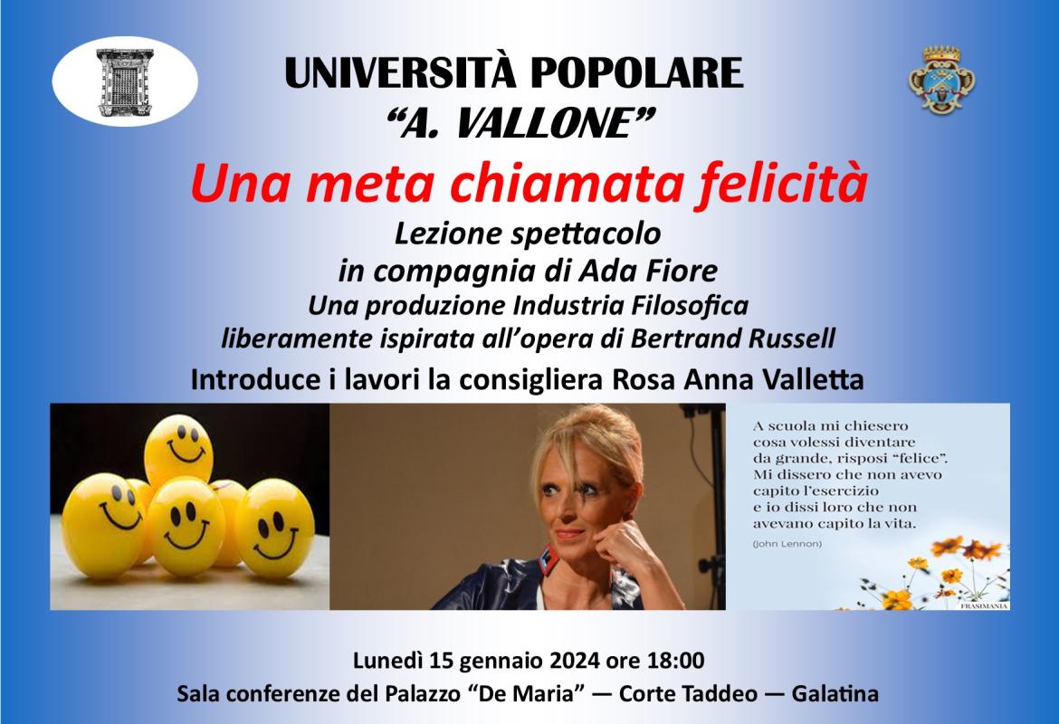 Oggi lunedì 15 gennaio alle ore 18:00, nella Sala conferenze dell’ex Palazzo De Maria, in Corte Taddeo, riprende la programmazione dell’offerta formativa dell’Università Popolare “Aldo Vallone”