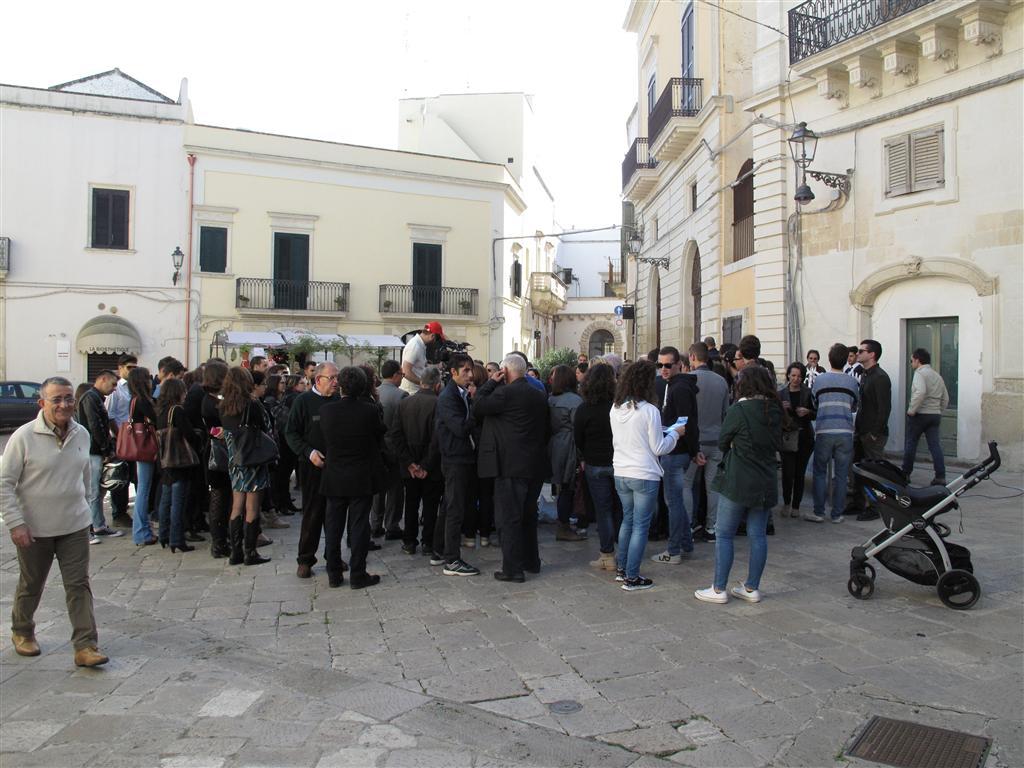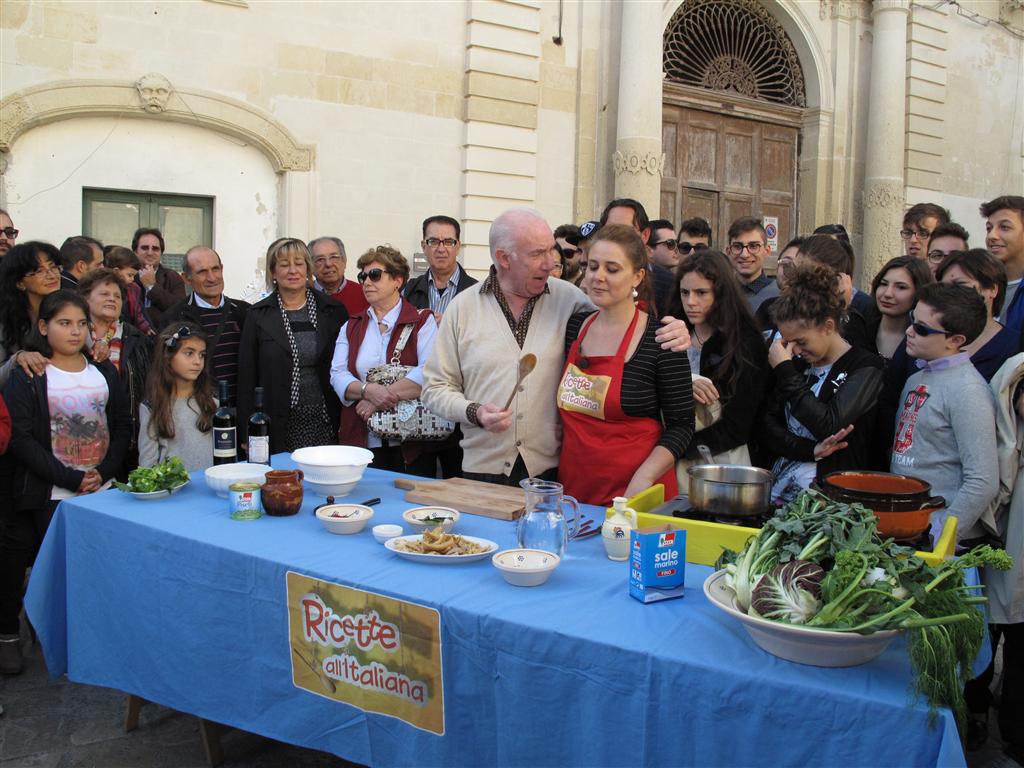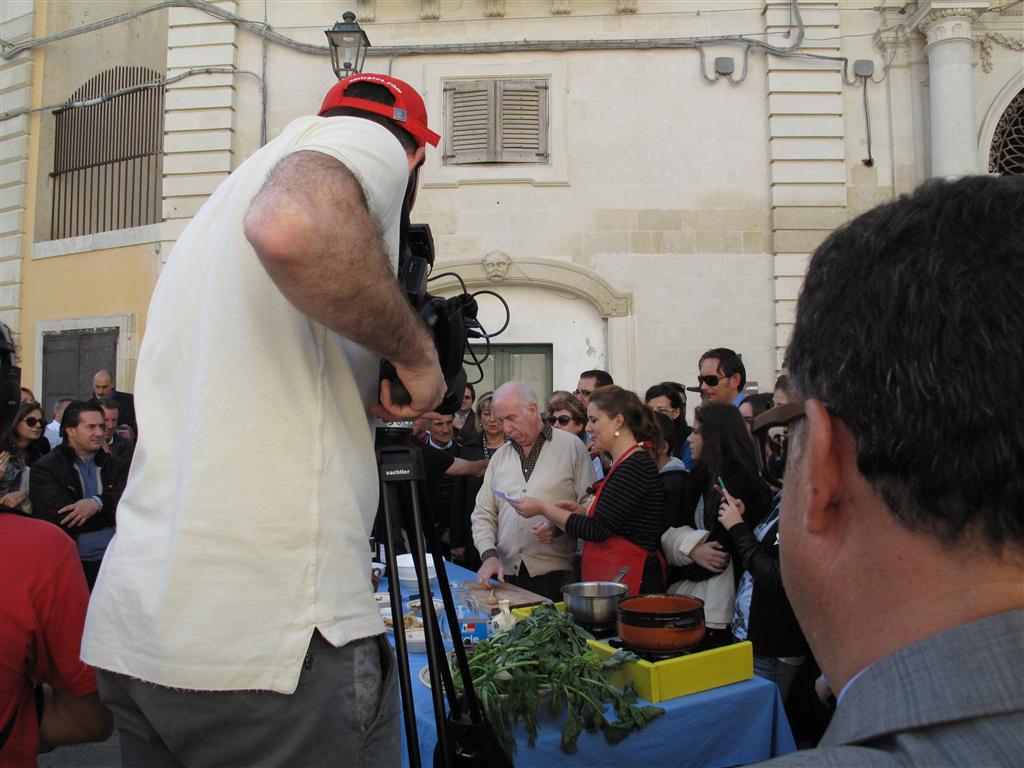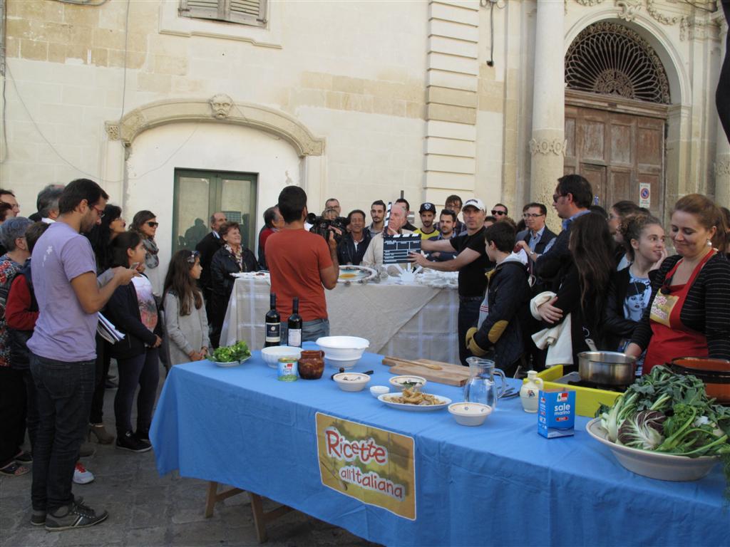 Galatina - Per la gioia di Davide Mengacci si è inventata anche le “rape ‘nfucate alle cecamariti”, facendo aprire un dibattito fra chi sostiene che quella ricetta con il pane fritto sia riservata ai soli piselli passati in tegame con l'aceto e chi, invece, ritiene che sia una tecnica adottabile per ogni pietanza. Un’emozionata Marilù Amato è stata, ieri, la cuoca di ‘Ricette d’Italia’, la popolare trasmissione di Rete 4 che va in onda dal lunedì al sabato dalle ore 10:50 alle ore 11:30. Le registrazioni sono state realizzate in piazzetta Raimondello Orsini ed in piazza San Pietro. La Giunta comunale, quasi al completo (Roberta Forte che non aveva, neanche, partecipato alla sfilata per il 4 novembre, si è defilata intorno alle 12:45) si è fatta fotografare con il popolare presentatore di Mediaset.