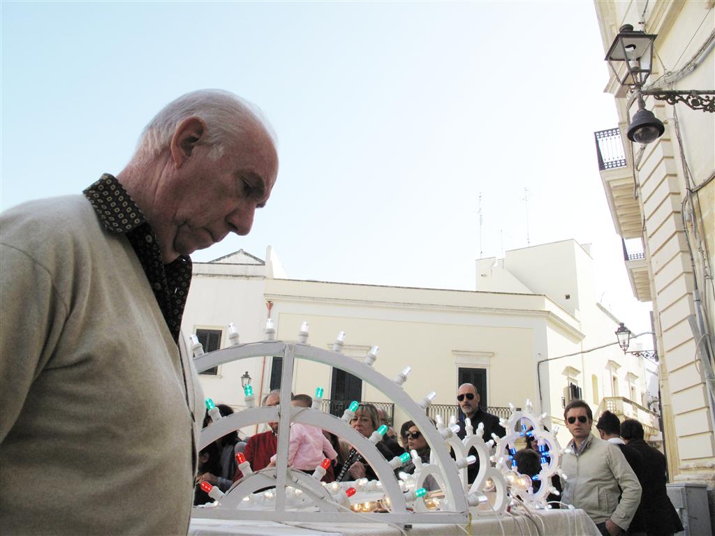 Il Sindaco Cosimo Montagna, dopo le amarezze dei giorni scorsi, dovute all’involontario scivolone sulla questione del Centro Polifunzionale e dopo le tre ore passate a celebrare la Festa delle Forze Armate e dell’Unità nazionale, si è lasciato andare ad un sorriso mentre vedeva infilare i ‘frizzuli’ nelle predette rape.