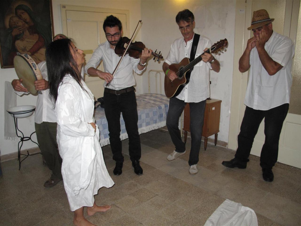 Angelo Serra, Antonio Zappatore e Antonio e Gerardo Chirivì, da anni infaticabili animatori dell’iniziativapossonoessere fieri della sua riuscita. L’orchestrina terapeutica, composta da Umberto Panico, armonica a bocca, Adriano Piscopello, violino, Angelo Litti, tamburello e voce, Rossella De Benedetto, cantrice, Antonella Screti, tamburello e voce, ha dato il suo insostituibile contributo riuscendo quasi ad iniettare in tutti i presenti la musica che guarisce.