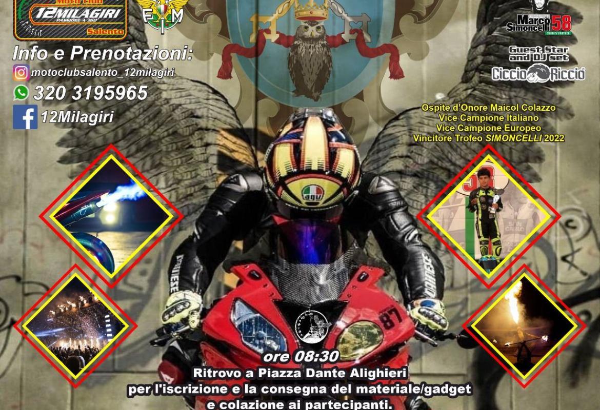 Tutto pronto per il 30 Aprile: ritornerà a Galatina la passione dei motori con la Prima Edizione del Motoincontro La Civetta. Ad organizzarlo il MotoClubSalento12Milagiri guidato dal suo Presidente Pasquale Bandiera. Sarà una giornata ricchissima di appuntamenti con il giro in mattinata lungo le coste Salentine e gli spettacoli serali presso il quartiere fieristico.