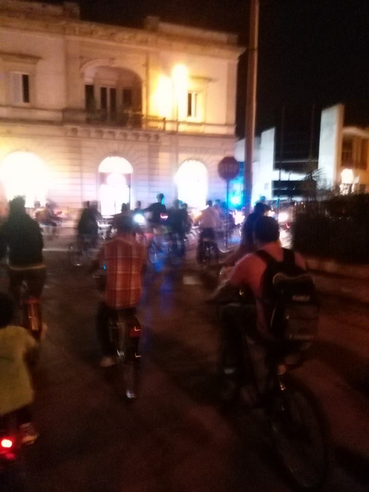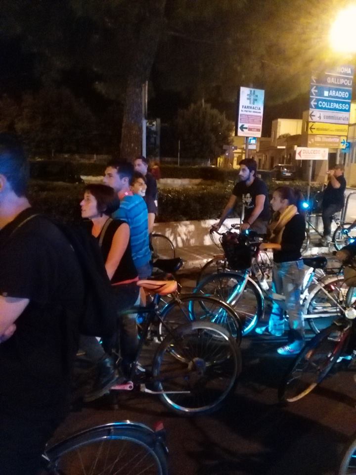 Galatina - Una scia di lucine ha percorso il due ottobre la città; uno sciame di ruote a due e due all’unisono; la coda di una cometa disordinata e chiassosa, insolente e colorata. La biciclettata, organizzata a chiusura del corso di ciclomeccanica e poco prima di festeggiare l’apertura dello Spazio Bicivetta, ha percorso un pezzo della città, in una sera di inizio autunno in pieno stile galatinese (e non solo): tante macchine incolonnate su corso Porta Luce (seppure nei negozi con la macchina non si possa entrare, toccherebbe ricordarlo), tante altre impegnate nel girotondo intorno alla villa, in piazza Alighieri; molte ferme, ai bordi delle strade, a vedere sfilare il torpedone di bici, con gli occhi impazienti che ha spesso l’automobilista quando aspetta che un ciclista o un pedone liberi il passaggio: incuriosito, perché il tipo su due ruote, schiena eretta e sguardo fiero, in fondo fa simpatia, soprattutto se attraversa in fretta.