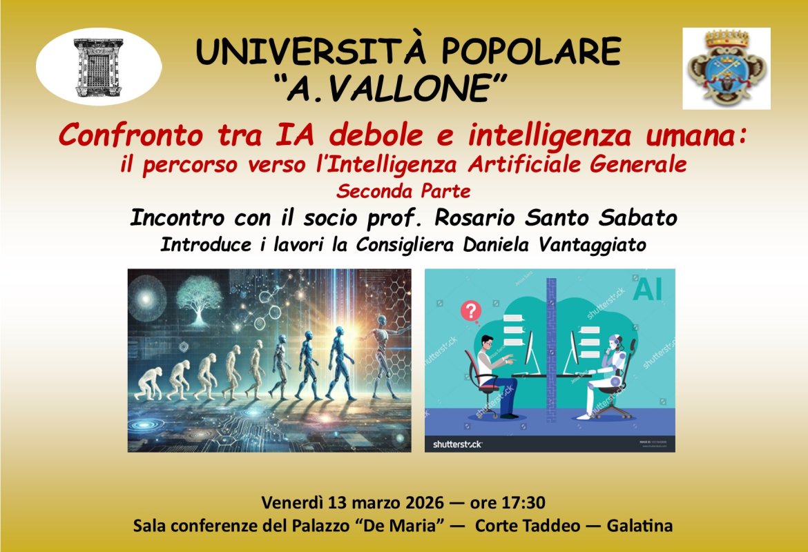 Oggi venerdì 13 marzo 2026 alle ore 17:30, nella Sala conferenze “De Maria”, in Corte Taddeo, è prev