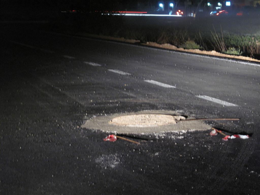 Alle ore 20:25 i tondini del primo tombino (come si vede nelle foto) non erano stati rimossi ma almeno erano stati schiacciati fino a terra. Quelli del secondo erano ancora al loro posto. Il rischio per le auto è che si trovino con uno pneumatico danneggiato. “Domani alla luce del sole –ha aggiunto il solerte Carabiniere al telefono- sarà possibile intervenire meglio”.