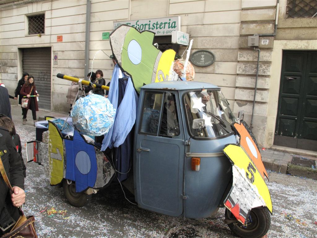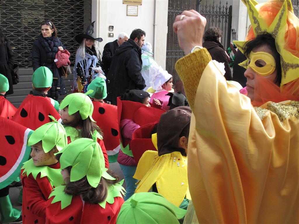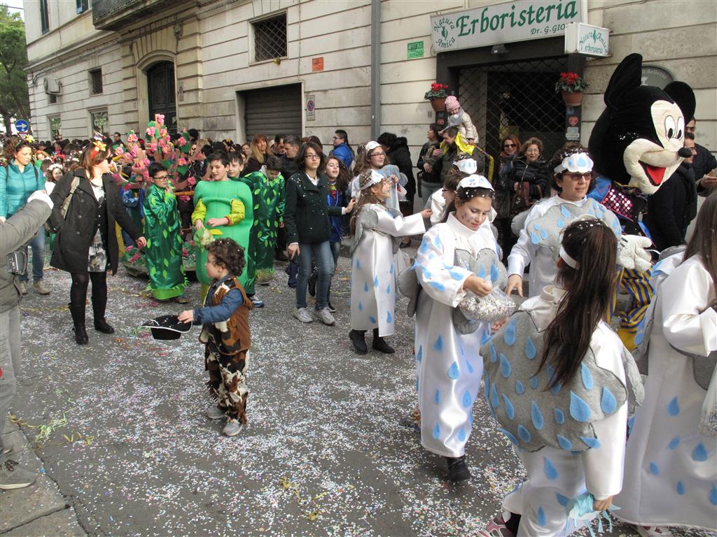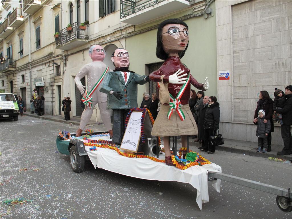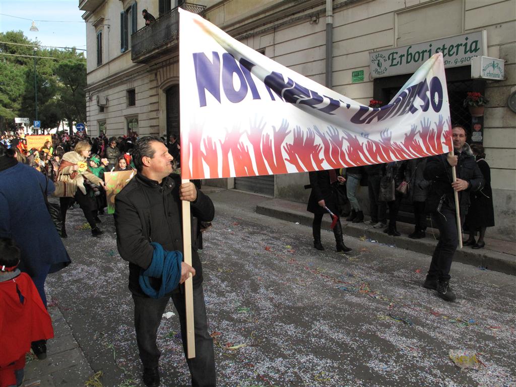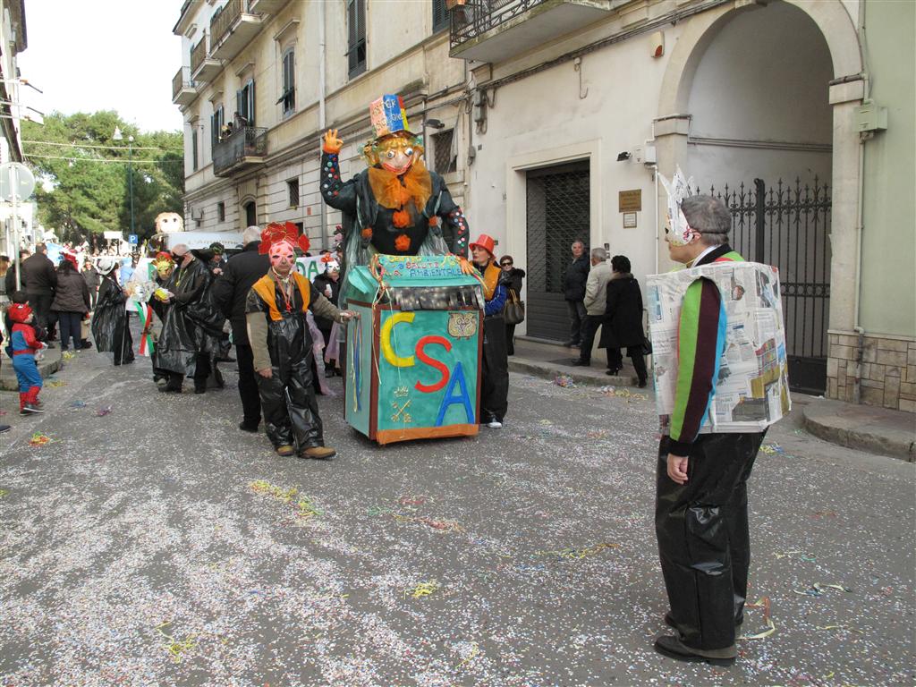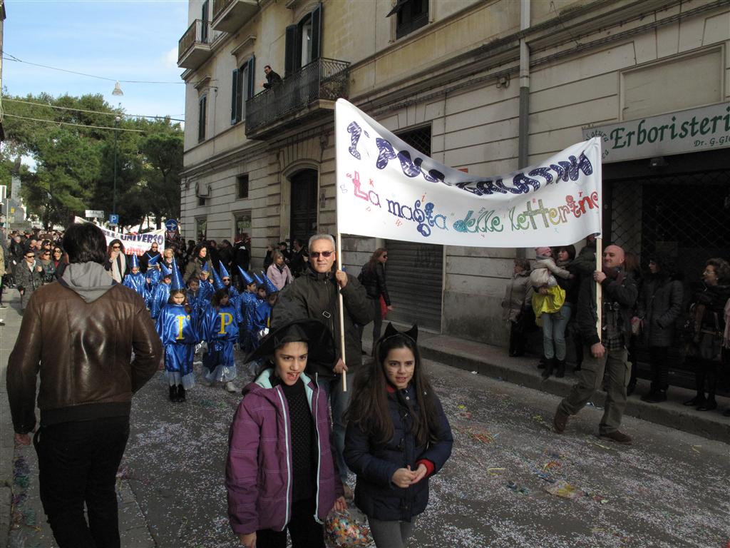 Almeno ottomila persone hanno riempito, ieri, Piazza San Pietro per festeggiare il ritorno del Carnevale galatinese. I bambini dei tre Poli hanno donato la loro gioia, i loro colori, la loro allegria ad una Città che ne ha proprio bisogno. Il Mago Fracasso ha ringraziato le maestre e l’applauso si è levato fragoroso da tutta la piazza. “Semel in anno licet insanire (Una volta all’anno è consentito fare pazzie)” – ha ricordato Daniela Vantaggiato, assessore alla cultura, rigorosamente mascherata da dama veneziana, accompagnata da un irriconoscibile Alberto Russi. Sotto un elegante abito di plastica riciclata Maria Rosaria Romano, ex-assessore ai servizi sociali, ha sottolinea il messaggio che i frequentatori del Centro Diurno, guidati da Natalino De Paolis, hanno voluto lanciare: “Non siamo da buttare. E allora ricicliamo”.
