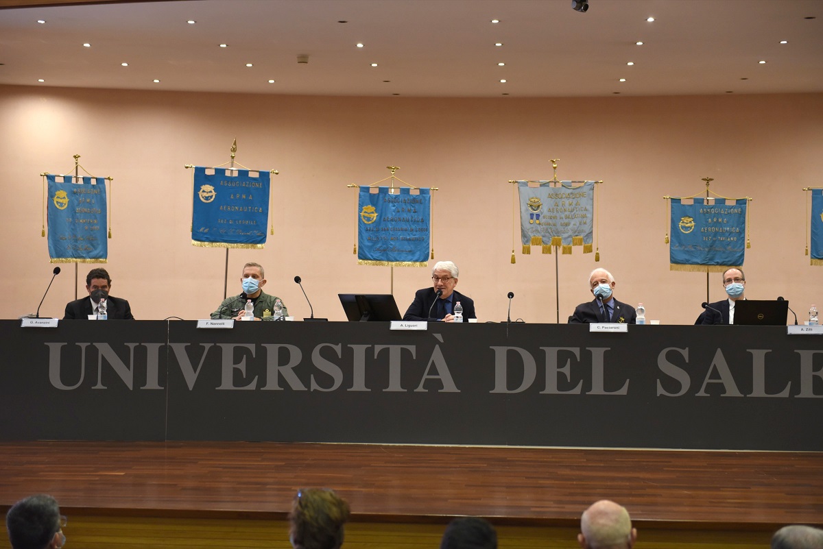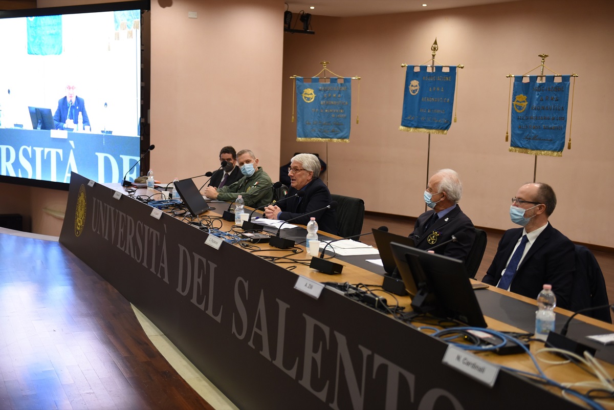 L’aula congressi del campus universitario “Ecotekne” di Lecce ha ospitato, nella mattinata del 25 novembre, il convegno "Perché volare? Le origini, dai Fratelli Wright alla Grande Guerra", organizzato dall'Associazione Arma Aeronautica — Aviatori d'Italia. Quello di Lecce è stato il primo di una serie di 15 incontri, che si terranno in altrettante città italiane per ripercorrere i 100 anni dell'Aeronautica Militare e preparare il terreno alla celebrazione del centenario dell'Arma Azzurra che ricorrerà il 28 marzo 2023. «Con questo progetto l'Associazione Arma Aeronautica intende contribuire alla diffusione, nella società civile e soprattutto tra i giovani, della conoscenza dell'apporto che l'Aeronautica Militare ha fornito e fornisce, con grande professionalità, senso del dovere e spirito di sacrificio, a difesa degli interessi nazionali e, soprattutto, della serena convivenza e operosità di tutti i cittadini italiani e di quelli dei Paesi aderenti alla NATO», ha spiegato il Generale Ispettore Capo Nazzareno Cardinali, presidente della sezione Roma 2 "Luigi Broglio", ideatrice del progetto, realizzato in cooperazione con il Centro Studi Militari Aeronautici (CESMA). La conferenza, che ha avuto come moderatore il Dott. Antonio Liguori, si è svolta nel rigoroso rispetto delle misure precauzionali imposte dall’emergenza sanitaria in atto. Il Generale di Squadra Aerea Giulio Mainini, Presidente dell’Associazione, ha invitato i ragazzi a perseguire i propri sogni aeronautici con determinazione per poter superare le inevitabili difficoltà e prove. “La selezione è dura ma la soddisfazione di riuscire è enorme”, ha sottolineato “Non cambierei un minuto dei miei quarantaquattro anni in Aeronautica!” Il Colonnello Paciaroni ha trattato il tema "Dalla Belle Epoque a Vittorio Veneto; cinquant' anni che hanno rivoluzionato la Storia, la Società, la Scienza, la Tecnologia e l'Arte". A seguire il Prof. Giulio Avanzini, dell'Università del Salento, ha parlato de "La nascita dell'aviazione: dal sogno del volo ai fratelli Wright e ai pionieri del volo italiani". L'Ingegnere Antonio Zilli, del Distretto Tecnologico Aerospaziale, ha affrontato il tema "Aeroporto di Grottaglie e sfide per l'industria aerospaziale: UAS e volo suborbitale. L'innovazione coordinata dal Distretto Tecnologico Aerospaziale". L’ultimo intervento è stato del Colonnello Filippo Nannelli, Comandante del 61° Stormo di Galatina, che ha illustrato l’argomento "La Puglia terra di addestramento di piloti: da ieri ad oggi". «Il convegno è un'occasione da non perdere per conoscere meglio il passato e il presente dell'Aeronautica Militare, protagonista di eventi importanti e cruciali della storia italiana», ha sottolineato il Generale Cardinali a chiusura dell’attività, «ma anche per approfondire temi estremamente concreti ed attuali dei settori militare e industriale dell’aerospazio e della difesa italiani legati alla realtà pugliese e salentina». La platea, composta principalmente da ragazzi degli Istituti di Istruzione Secondaria Superiore di Lecce, si è dimostrata estremamente attenta alle tematiche trattate e, al termine degli interventi, gli studenti hanno rivolto numerose domande al Gen. Mainini e al Col. Nannelli. Quest’ultimo, nel ricordare il motto dell’Aeronautica Militare “Con Valore verso le Stelle”, ha incoraggiato i giovani “ad affrontare con valore ogni sfida che vi si porrà davanti. Non fermatevi mai dinnanzi al primo ostacolo: solo così potrete raggiungere gli obiettivi prefissati e realizzare i vostri sogni”.