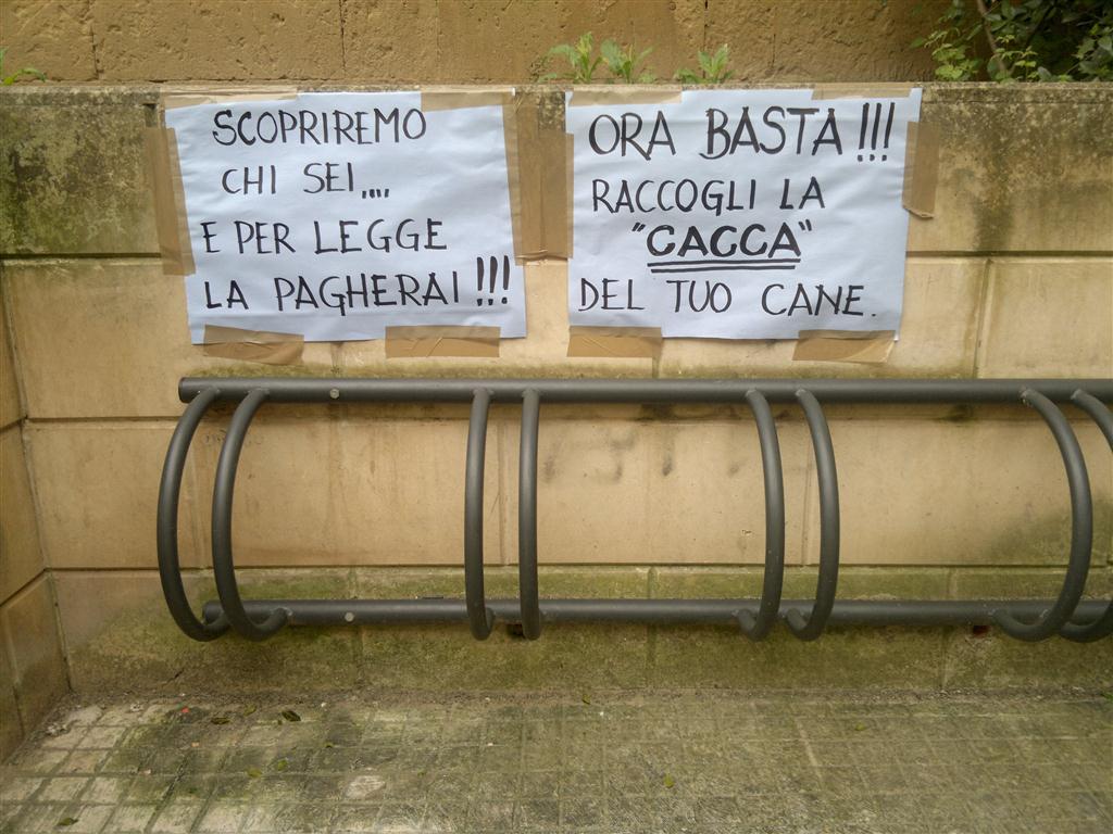 Egregio direttore, non so dire se a portarmi a scrivere questa lettera è più la rabbia o la tristezza nel vedere quanto succede nel nostro comune. Come tutte le mattine accompagno le mie figlie a scuola. Una mattina vedo che vicino la scuola media Giovanni Pascoli ci sono attaccati sul muro della scuola dei cartelloni con su scritto "questa scuola non è il cesso del tuo cane , basta cacca del cane...." ed altre cose simili.