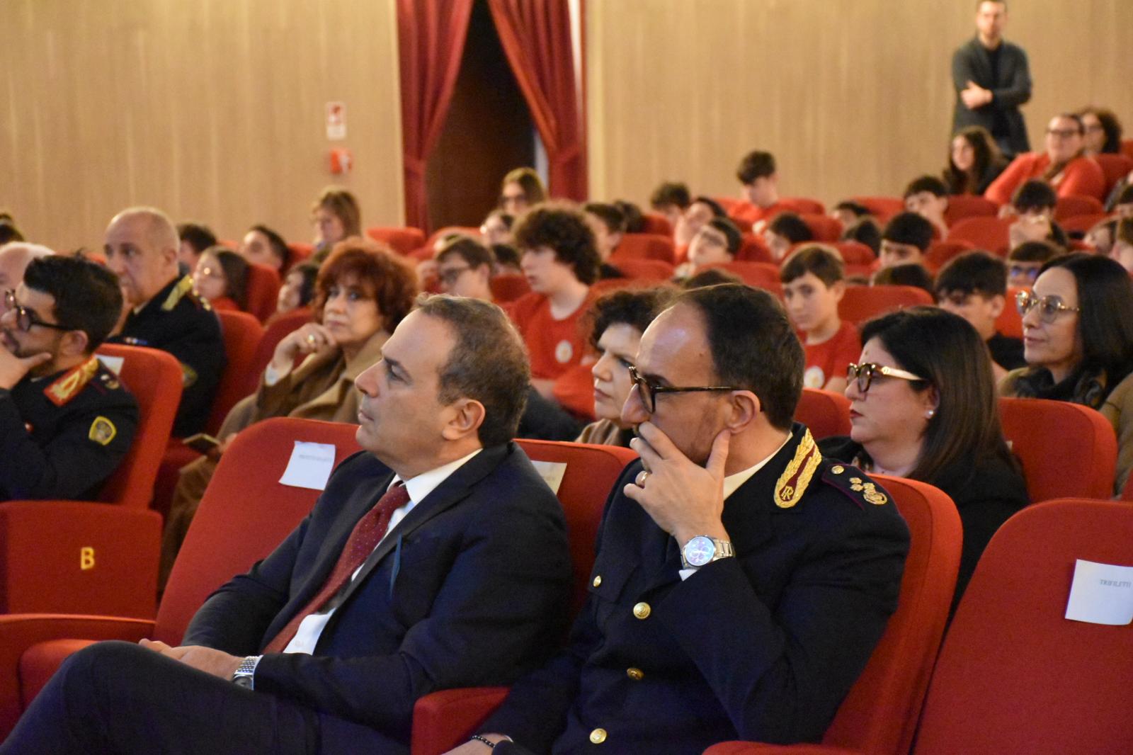 La manifestazione ha riunito gli studenti di tutte le scuole secondarie di primo e secondo grado del territorio. I lavori sono stati aperti dal Questore della Provincia di Lecce, Gian Pietro Lionetti, seguiti dai saluti istituzionali del Prefetto, Natalino Manno, del Sindaco di Galatina, Fabio Vergine e del Dirigente dell’Ufficio Scolastico Regionale, Ambito Territoriale di Lecce, Trifiletti e sono proseguiti con gli interventi di autorevoli rappresentanti del mondo della giustizia, della sicurezza, della sanità e dell’impegno civile: sul palco si sono alternati, la dott.ssa Francesca Mariano, Giudice presso il Tribunale di Lecce, il dott. Antonio De Donno, già Procuratore della Repubblica di Brindisi, il dott. Antonio Pignataro, Consigliere della Presidenza del Consiglio dei Ministri e già Dirigente Generale di Pubblica Sicurezza, la dott.ssa Mariangela Pascali, Direttore del Dipartimento Territoriale SERD di Lecce, e, infine, Vito Vernì, educatore della Comunità Emmanuel di Lecce, il quale ha fornito la propria esperienza personale ai giovani studenti, che hanno ascoltato attentamente tutti i contributi forniti.