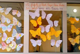 Ieri, nel Giorno della Memoria, sulle finestre dell'Istituto Comprensivo "G. Falcone e P.