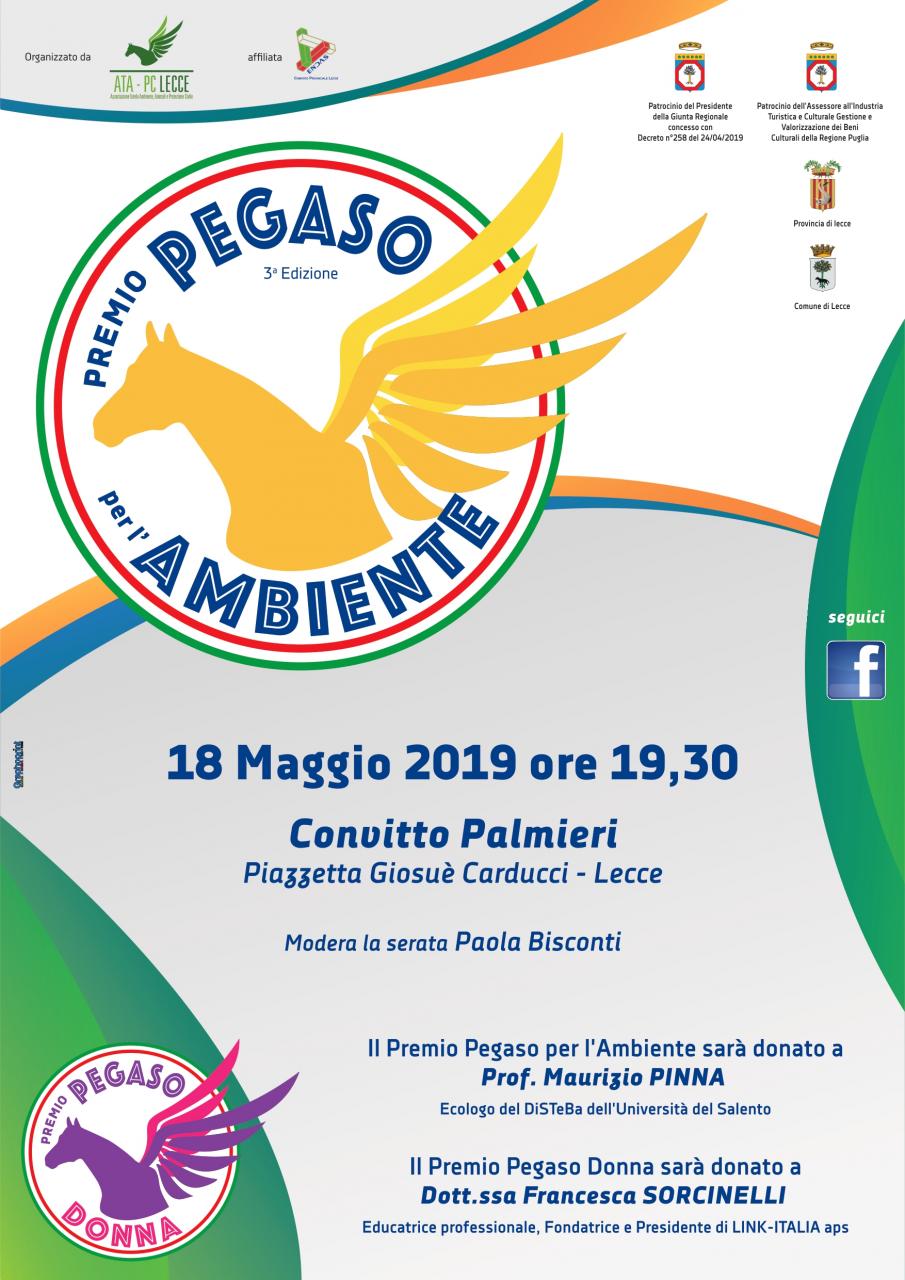 Dopo il successo delle prime due edizioni, il Teatrino del Convitto Palmieri a Lecce è pronto per ospitare la terza edizione del “Premio Pegaso per l’Ambiente”, evento ideato e organizzato dall'Associazione ATA-PC Lecce (Associazione Tutela Ambiente e Animali - Protezione Civile). L’appuntamento è fissato per sabato 18 maggio alle ore 19.30, una data molto attesa da tutti i soci di ATA-PC che, ogni volta, organizzano il tutto con passione e impegno.