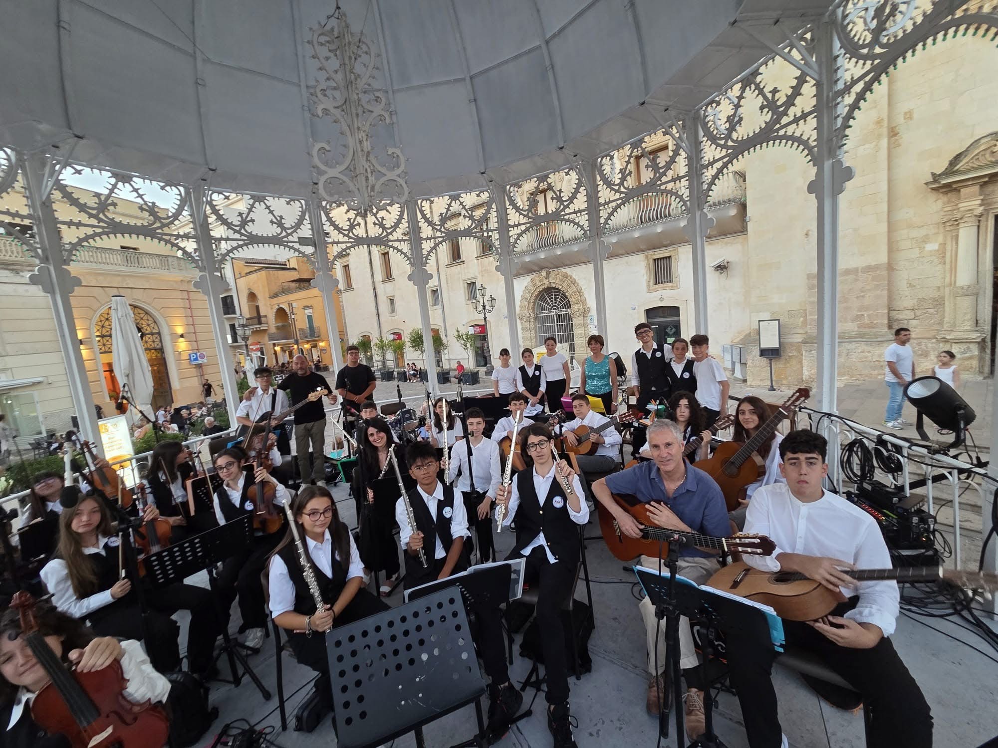 Lunedì 30 giugno 2025 è stata una serata speciale per l’Orchestra Giovanile “Giovanni Pascoli” dell’Istituto Comprensivo Polo 1 di Galatina e Collemeto. In occasione della chiusura dei festeggiamenti per i Santi Patroni Pietro e Paolo, i nostri giovani musicisti si sono esibiti in piazza San Pietro davanti a un pubblico numeroso e caloroso, regalando emozioni e applausi. Con grande impegno e padronanza del palco, l’orchestra ha proposto un programma musicale ampio e curato, capace di unire generi diversi: dalla lirica di “La donna è mobile” al griko di “Kali Nifta”, da “Hijo de la luna” alla colonna sonora dei “Pirati dei Caraibi”, fino a brani jazz come “Waltz for Debby” e melodie da musical come “Hello Dolly!”. Un viaggio musicale che ha messo in luce non solo le competenze tecniche dei ragazzi, ma anche la loro capacità di lavorare insieme, ascoltarsi, concentrarsi e affrontare con responsabilità esperienze complesse. È proprio in contesti reali ed extracurricolari come questo che emergono con forza le competenze trasversali degli alunni: la collaborazione, l’autonomia, la gestione dell’imprevisto, la comunicazione e la consapevolezza del proprio ruolo all’interno di un gruppo. La musica, in questo senso, si rivela un potente strumento educativo. Particolarmente significativa è stata la partecipazione della violinista Gabriella Manca, mamma di uno degli alunni, e degli ex studenti Gabriele Lisi, Pier Paolo Congedo, Marco Muci e Giacomo Maiorano, tornati con entusiasmo a suonare con l’orchestra. La loro presenza ha dato un forte segnale di continuità, appartenenza e affetto verso la scuola. La dirigente scolastica Luisa Cascione ha sottolineato il valore di questi momenti che uniscono scuola e territorio: “La scuola è motore di partecipazione e crescita sociale. Occasioni come questa rafforzano il senso di appartenenza e l’orgoglio per la nostra città di Galatina.” Ha concluso citando il maestro Ezio Bosso: “L’orchestra è una delle prove più belle che l’umanità abbia dato di sé...”. Un ringraziamento sentito ai docenti che hanno preparato e diretto i ragazzi con passione e competenza: Maria Rita Apollonio (pianoforte), Luisa Augusti (flauto), Graziano Caiuli (chitarra), Gianfranco Schirinzi (violino). Grazie ai genitori per il loro sostegno, ai collaboratori Antonello e Pasquale.