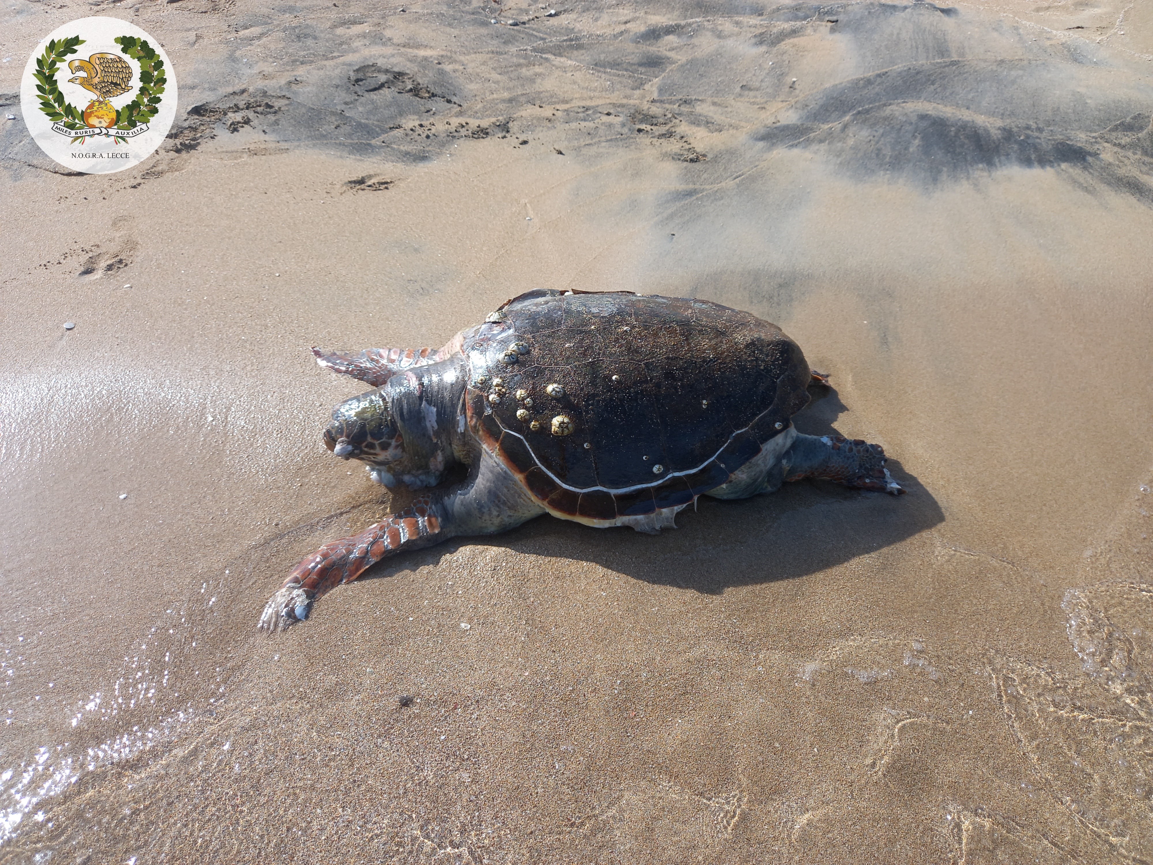 Una volta tirata a secco e segnalata con nastro bicolore le guardie del Nogra hanno allertato la Polizia Locale di Lecce affinché facesse intervenire una ditta specializzata nella rimozione e la ASL di competenza per effettuare l’autopsia che chiarirà le cause del decesso.