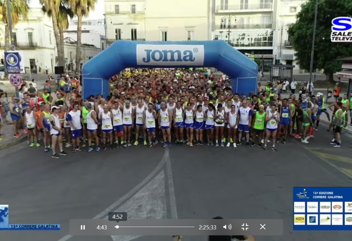 Vincenzo Falco della Caivano Runners ha vinto la XIII Correre Galatina (9 km tutti in città), con il tempo di 25':23''. Al secondo posto si è classificato Gianluca Tundo (Club Correre Galatina con 1 minuto e 3 secondi di ritardo. Sul terzo gradino del podio è salito Davide Spedicato della podistica magliese a 15 secondi dal galatinese.
