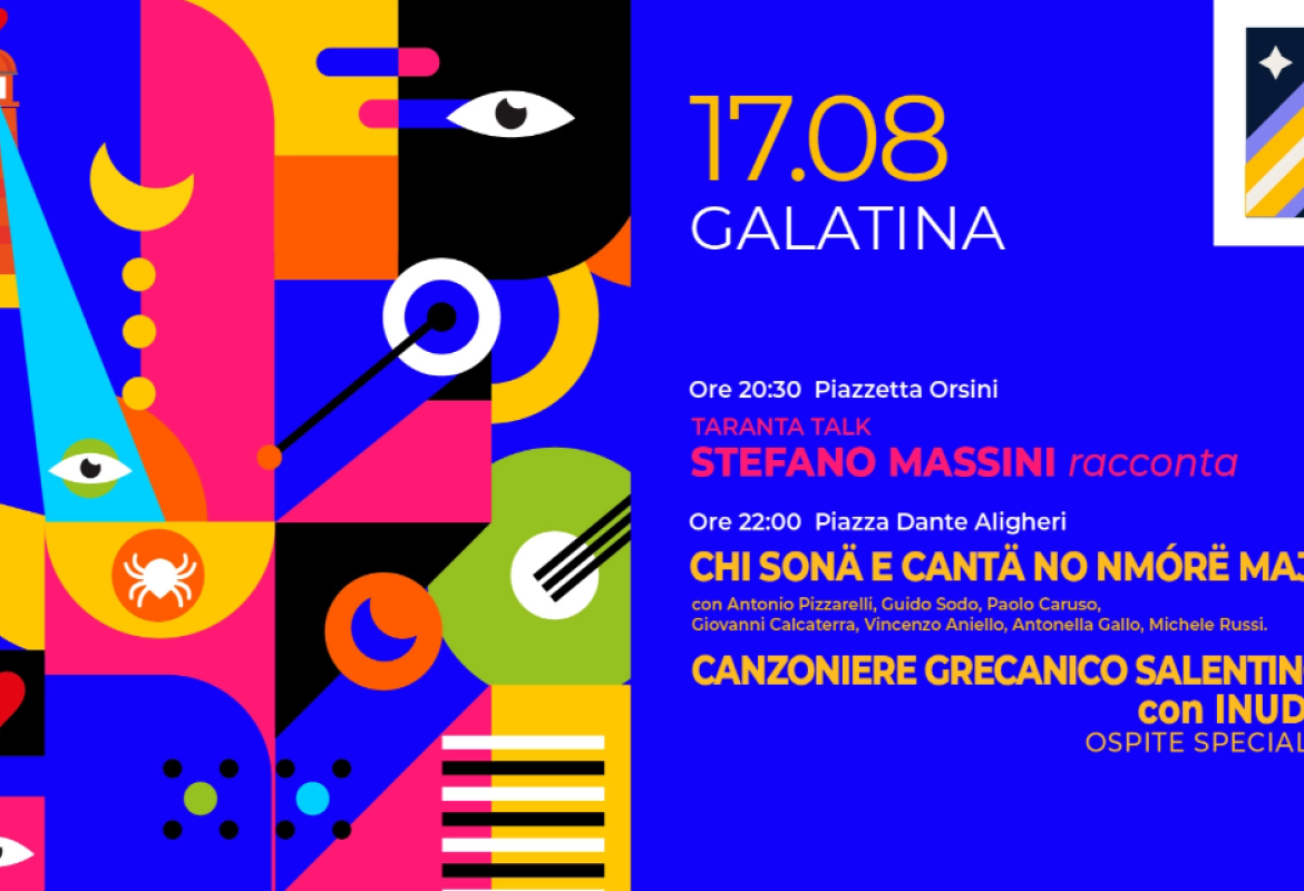 A Galatina il Festival La Notte della Taranta 2023 arriverà il 17 agosto 2023 per una delle sue più importanti tappe. Ad esibirsi saranno i Chi sonä e cantä no nmòrë majï e Canzoniere Grecanico Salentino che ospita Inude.