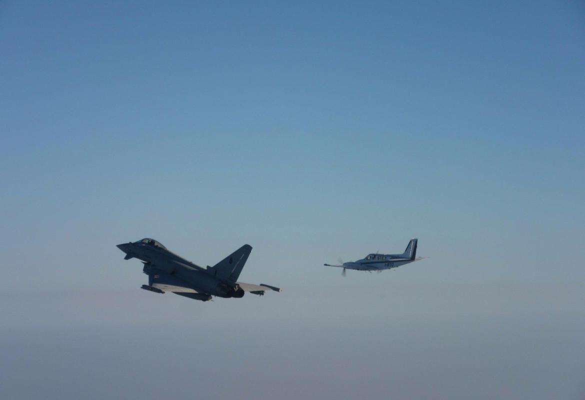 Piccolo bimotore perde i contatti radio, si alzano in volo due caccia per controllarlo