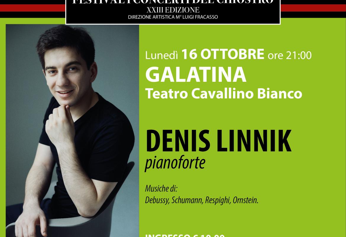 Il Festival I Concerti del Chiostro si prepara ad accogliere il giovane pianista di fama internazionale Denis Linnik. Appuntamento lunedì 16 ottobre 2023 a Galatina, sulla scena del Teatro Cavallino Bianco.