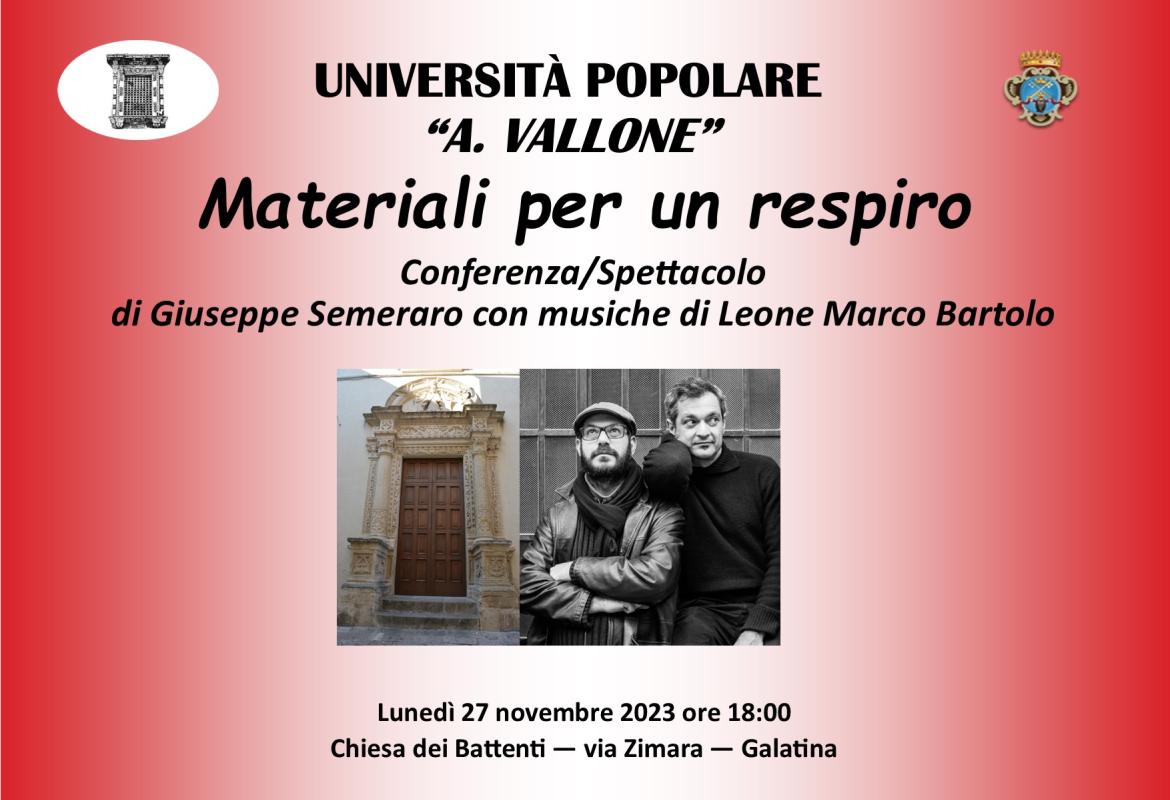 L’Università Popolare “Aldo Vallone” ospita oggi 27 novembre 2023 alle ore 18:00 nella Chiesa dei Battenti, in via Zi