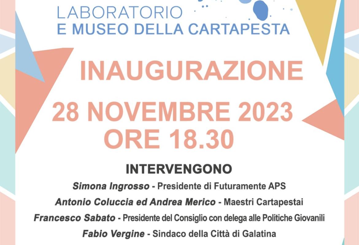 Si terrà martedì 28 novembre 2023 l’inaugurazione di Incartheart, una nuova realtà per la nostra comunità al cui interno ci sarà una sala museale con esposizione di opere in cartapesta