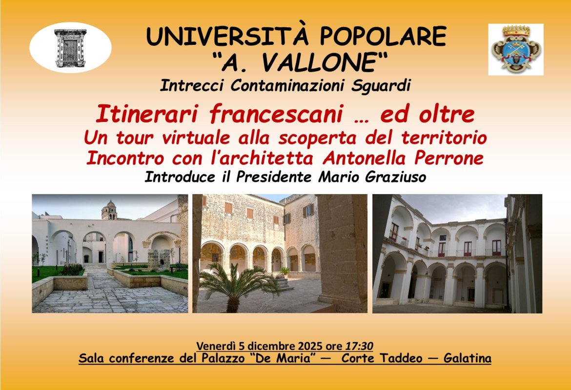 Oggi venerdì 5 dicembre 2025 alle ore 17:30, nella Sala conferenze dell’ex Palazzo De Maria, in Corte Taddeo, l’Unive