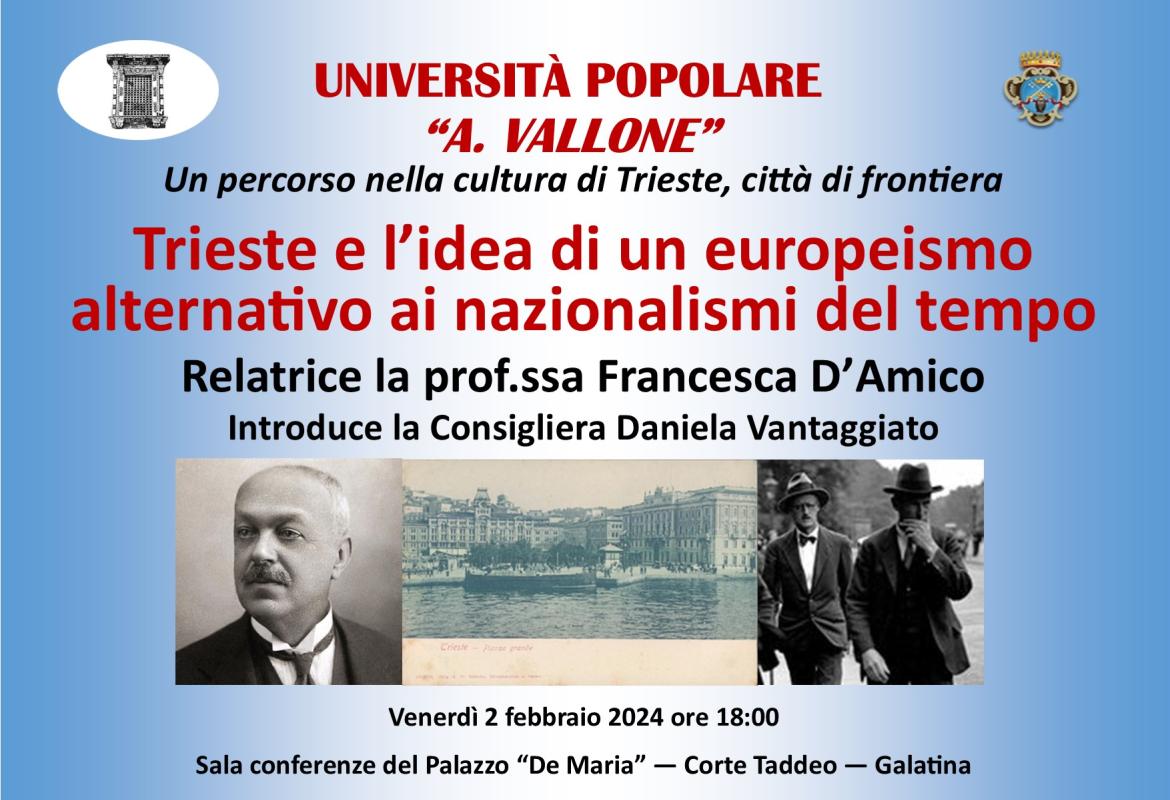 Oggi venerdì 2 febbraio 2024 alle ore 18:00, nella Sala conferenze dell’ex Palazzo De Maria, in Corte Taddeo, quale t