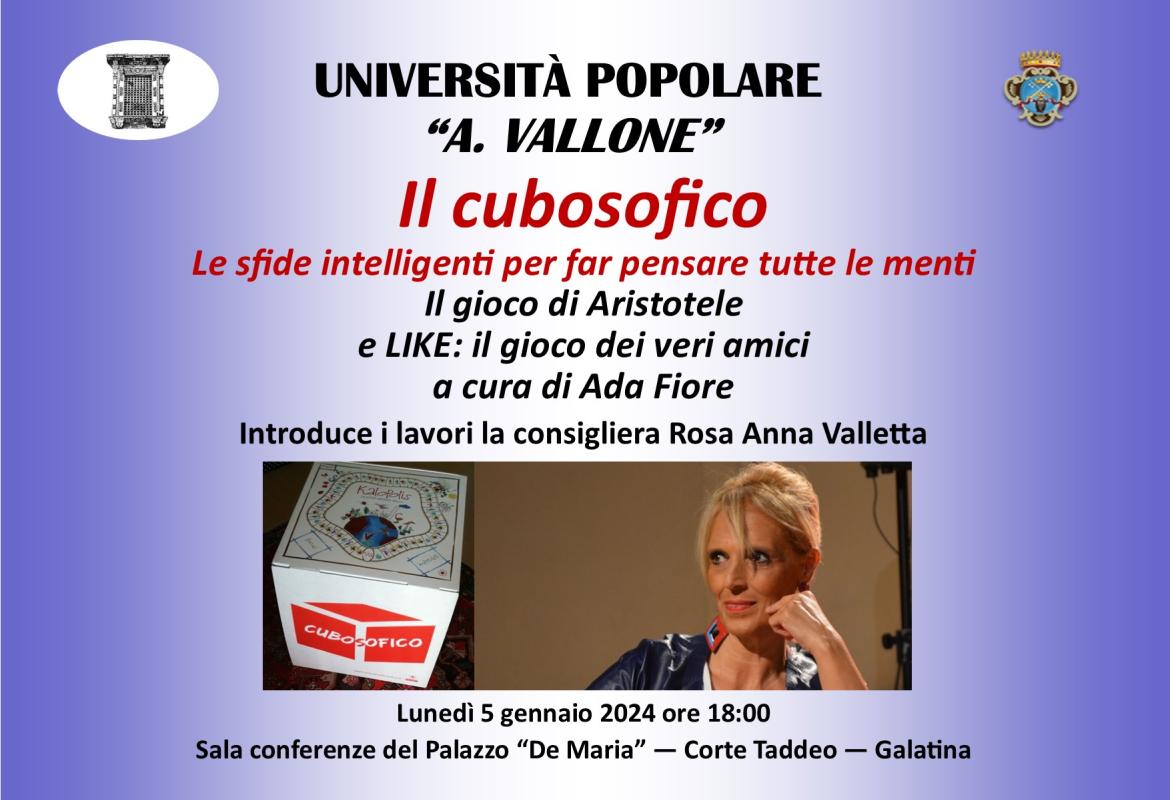 Oggi lunedì 5 febbraio alle ore 18:00, nella Sala conferenze dell’ex Palazzo De Maria, in Corte Taddeo, la programmazione dell’offerta formativa dell’Università Popolare “Aldo Vallone”