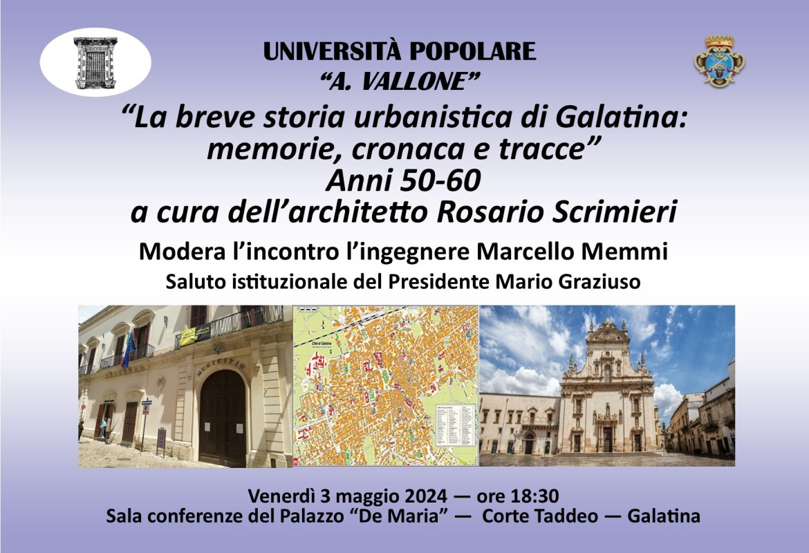 Oggi venerdì 3 maggio 2024 alle ore 18:30, nella Sala conferenze dell’ex Palazzo De Maria, in Corte Taddeo, avrà iniz