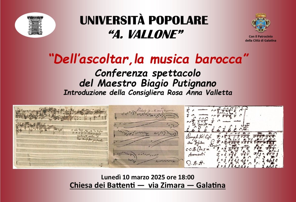 Evento/spettacolo dal titolo “Dell’ascoltar, la musica barocca”, caratterizzato dalla partecipazione del Maestro com