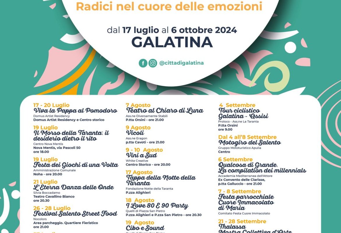 Il calendario dell’Estate della Civetta 2024, rappresenta per Galatina il concretizzarsi di un’idea progettuale, che intende portare all’attenzione dei viaggiatori e dei cittadini la conoscenza