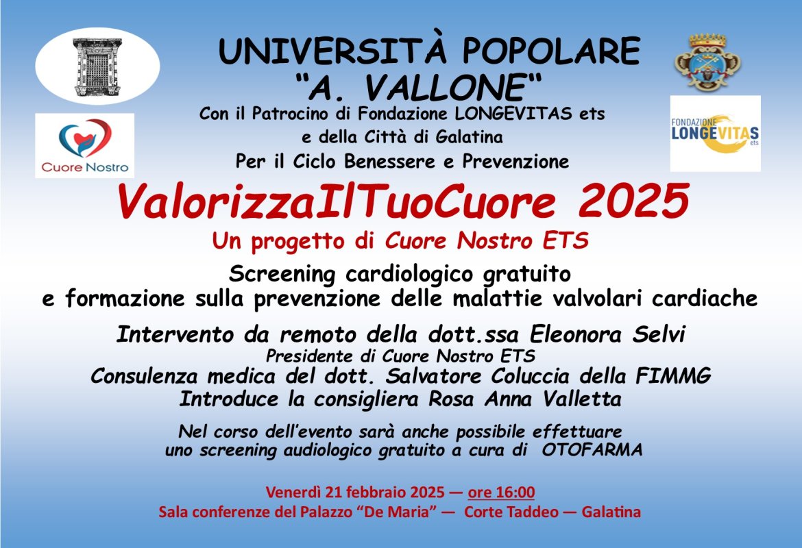 Oggi venerdì 21 febbraio 2025 alle ore 16:00, nella Sala conferenze dell’ex Palazzo De Maria, in Corte Taddeo, l’Univ