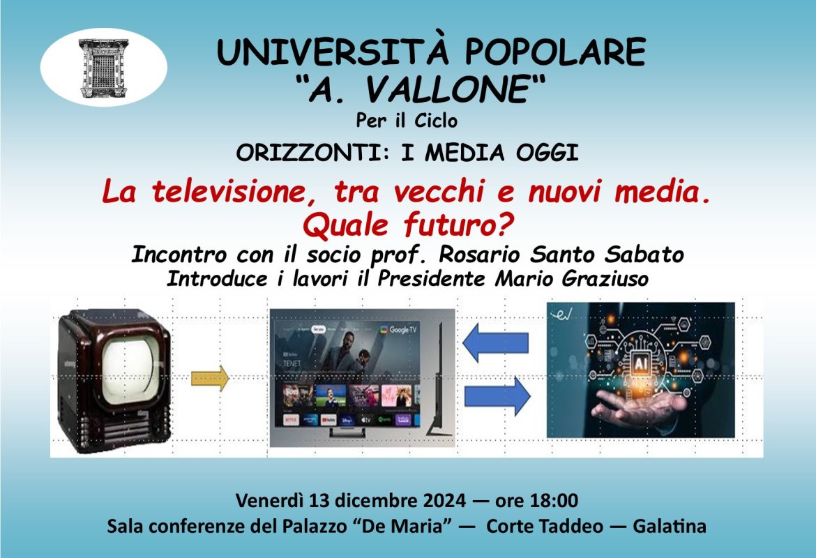 Oggi venerdì 13 dicembre 2024 alle ore 18:00, nella Sala conferenze “De Maria”, in Corte Taddeo, è previsto il second