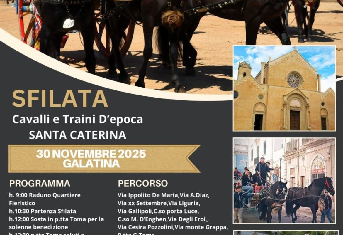 Un sfilata di carri, cavalli e traini d’epoca si svolgerà a Galatina domenica 30 Novembre 2025, dalle ore 09:00 alle