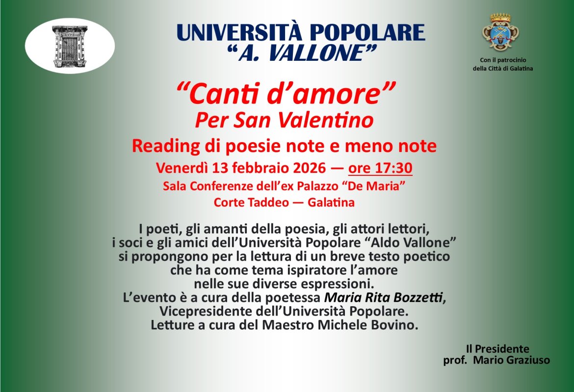 Oggi venerdì 13 febbraio 2026, alle ore 17:30, nella Sala Conferenze dell’ex Palazzo De Maria, in Corte Taddeo, l’Uni