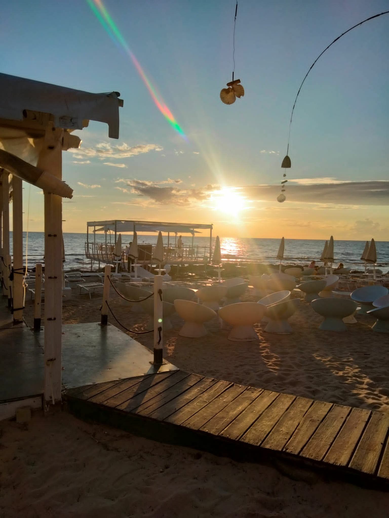 Ho scritto una poesia dedicata ai tramonti salentini ispirata dalle foto di Ada Colazzo, mia madre, e Giuseppe Quida, un mio amico entrambi villeggianti a Rivabella. Ricorda il momento difficile che tutti stiamo vivendo con la guerra parlando del tramonto come momento di raccoglimento e riflessione, come oasi di pace nella quale potersi ristorare, trovando ispirazione nei greci con il loro Kalispera.