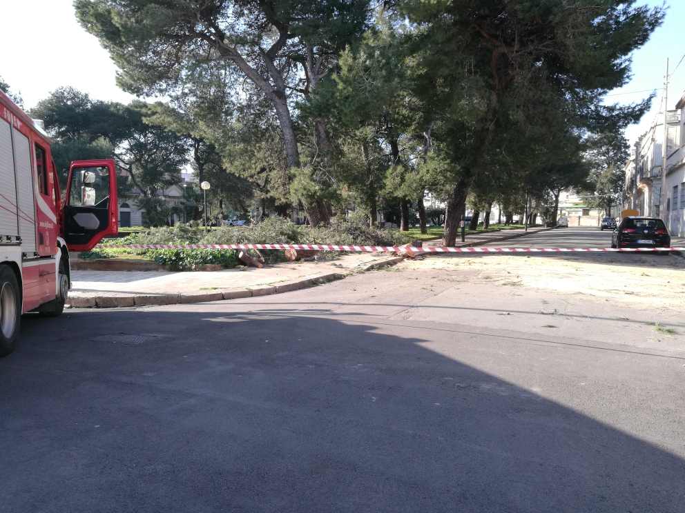 Come era stato, purtroppo, previsto dagli abitanti della zona uno dei grandi pini ad ombrello di Piazzale Stazione, ieri poco dopo le ore 13:30, è caduto sull'asfalto occupando completamente la carreggiata sul lato destro del giardino pubblico. Un'auto che era regolarmente parcheggiata, per fortuna, è stata solo sfiorata.